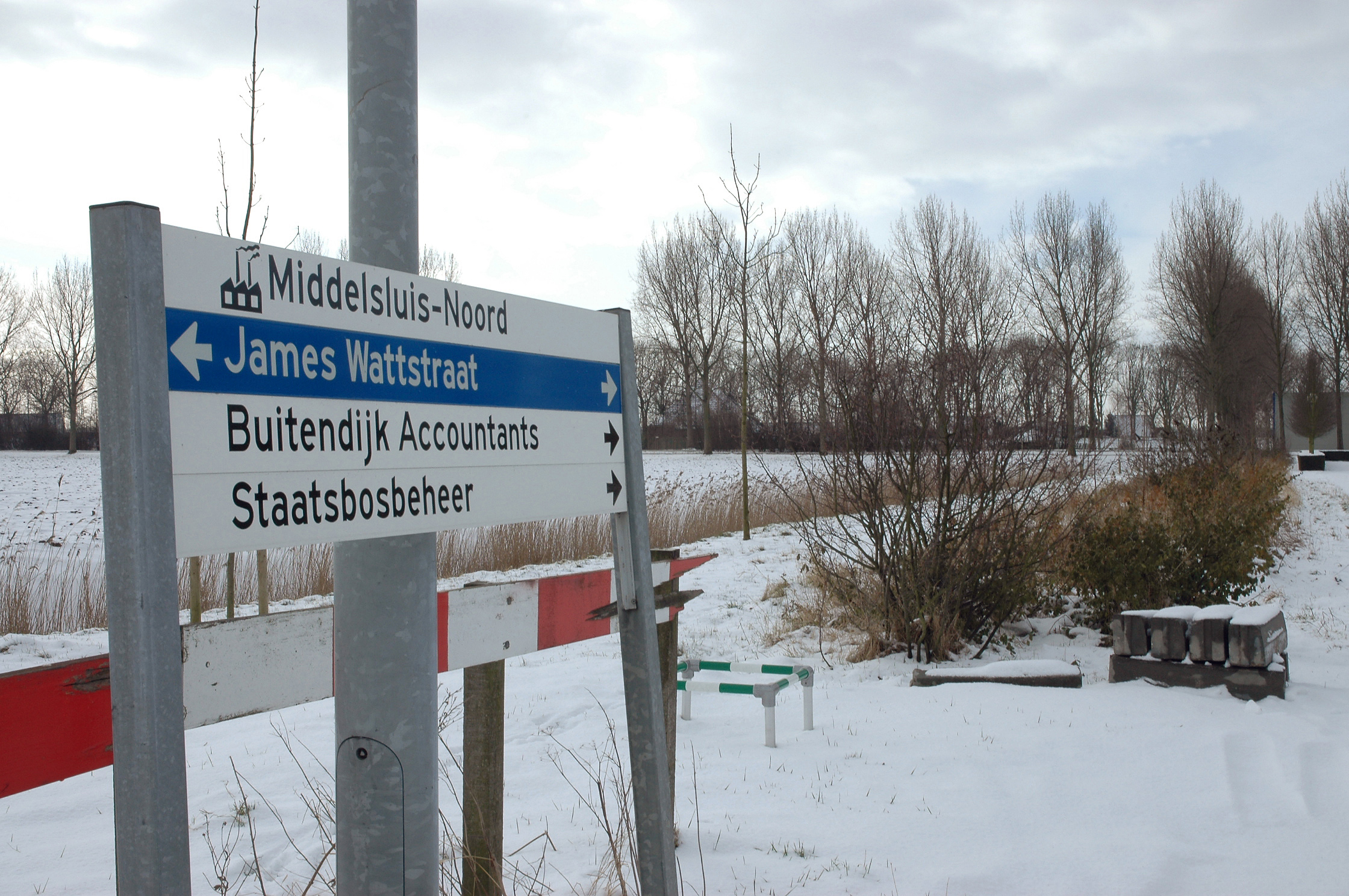 - Wijkbord in de James Wattstraat in Numansdorp, gezien in de richting van de Energieweg.