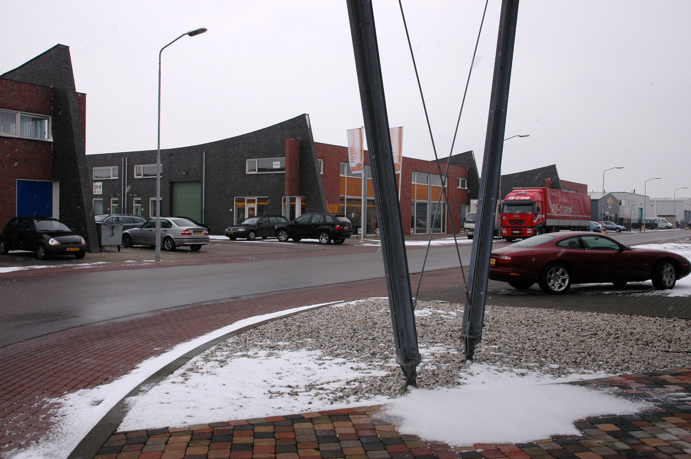 Div. bedrijven aan de Einsteinstraat gezien vanaf de J. van der Heydenstraat richting Chr. Huygensstraat in Numansdorp.