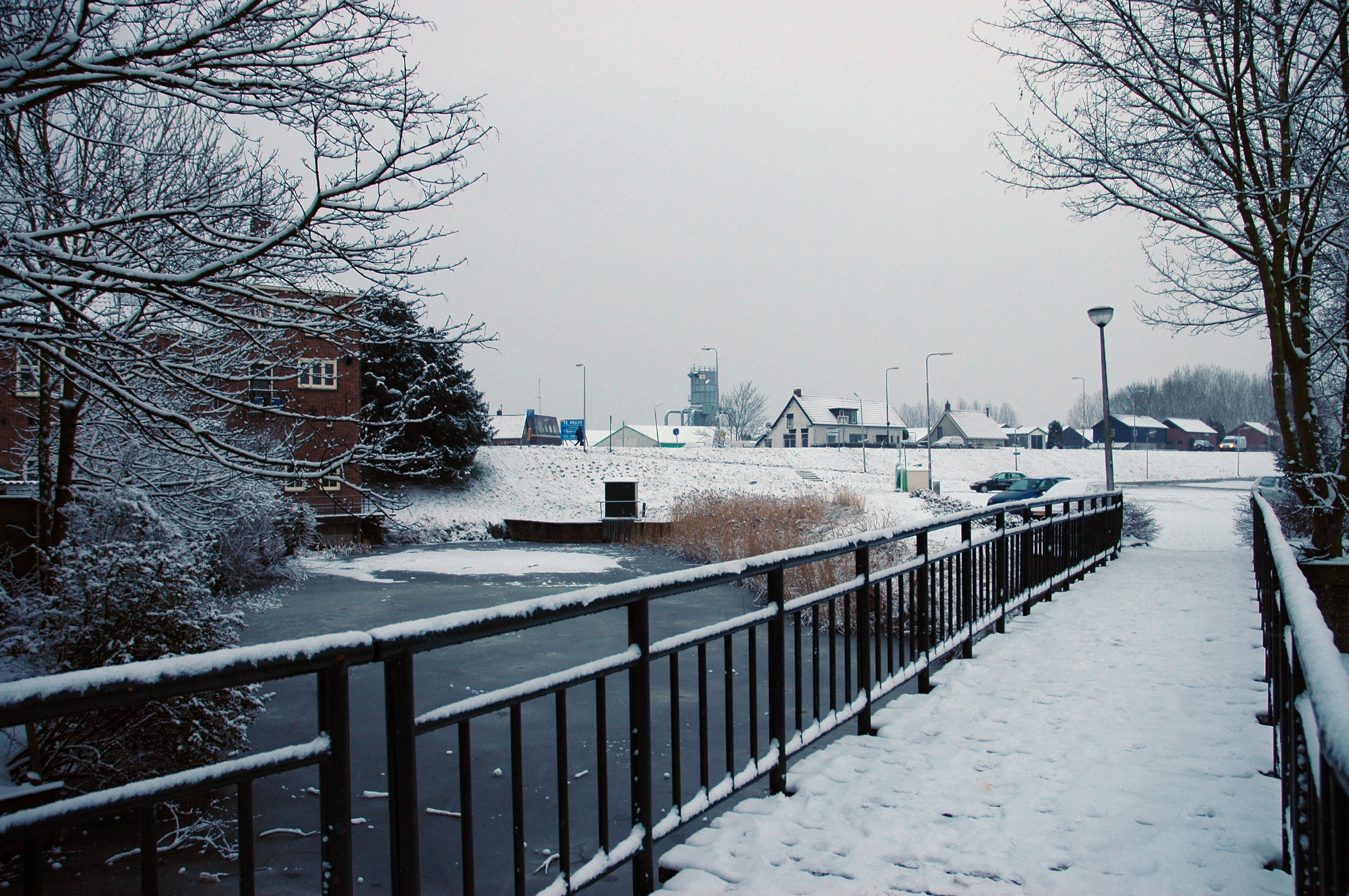 - Fietsbrug over de Binnenhaven vanaf het Flohilplein richting het Schippershuis (links) aan de Molendijk in Numansdorp.