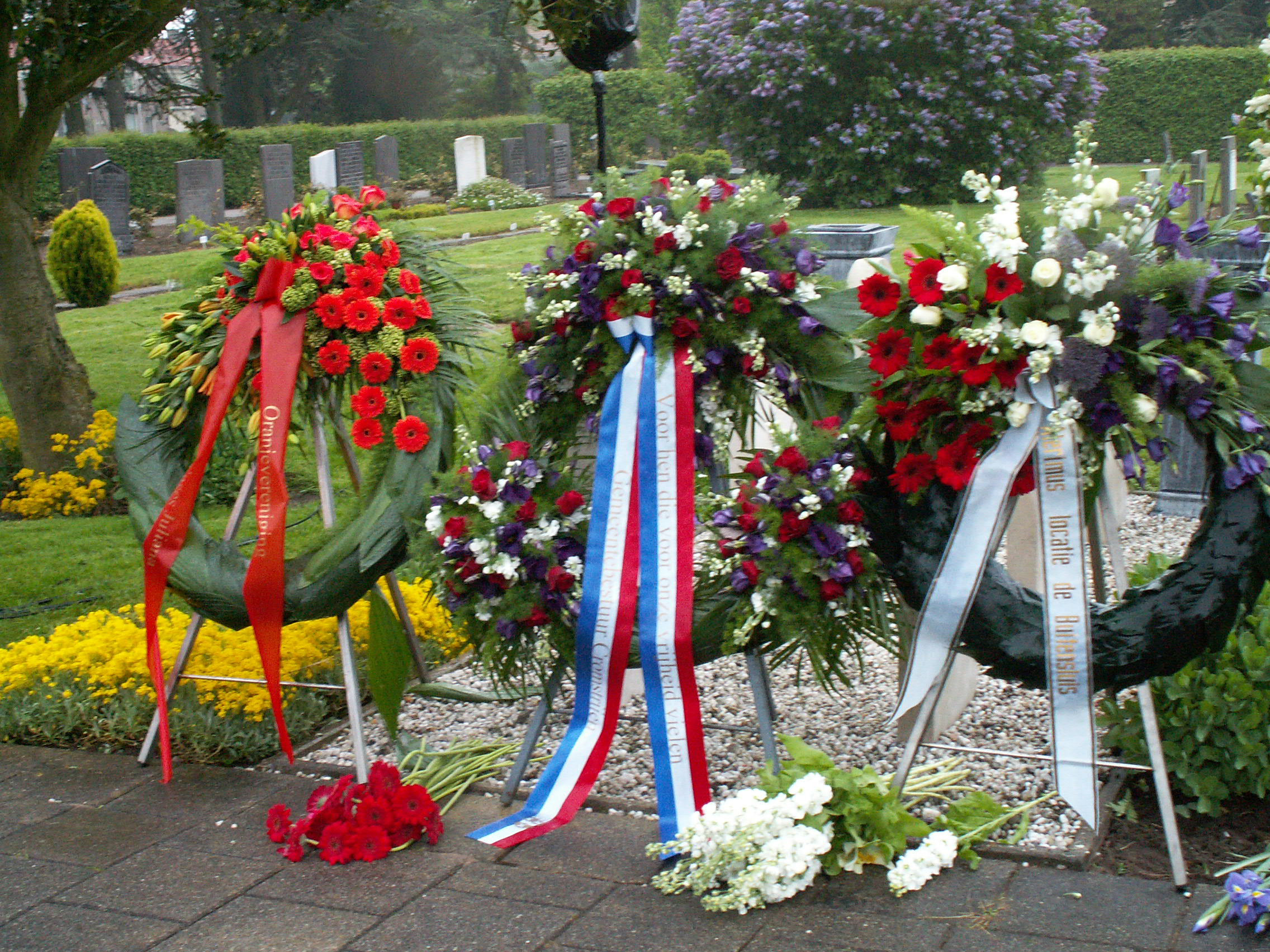 - Kransen ter herdenking van oorlogsslachtoffers op de Algemene Begraafplaats aan de Hallinxweg in Numansdorp.