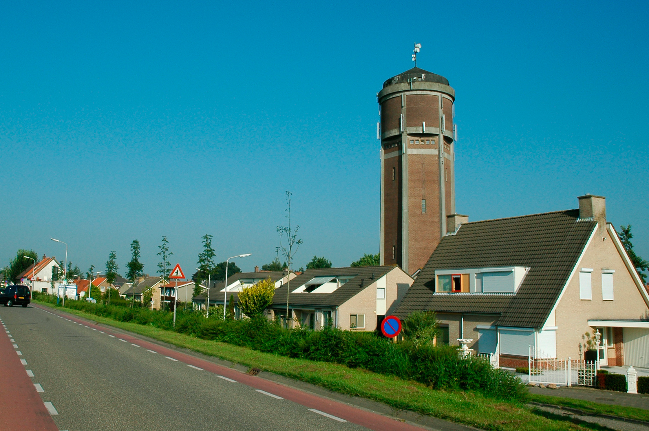 Watertoren van Klaaswaal gezien vanaf de Oud-Cromstrijensedijk Oostzijde.