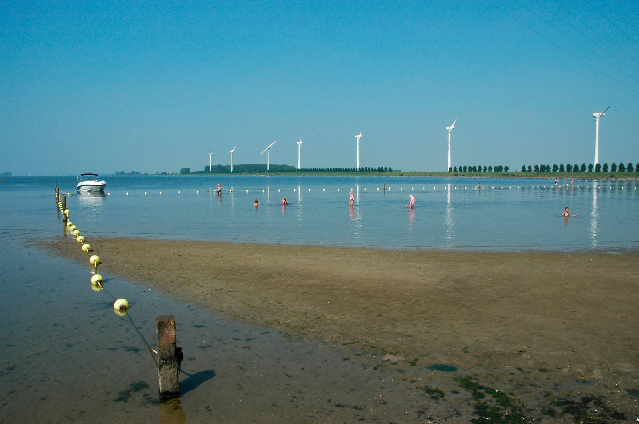 Strandje aan de Westzijde van de Haringvlietbrug bij Numansdorp.