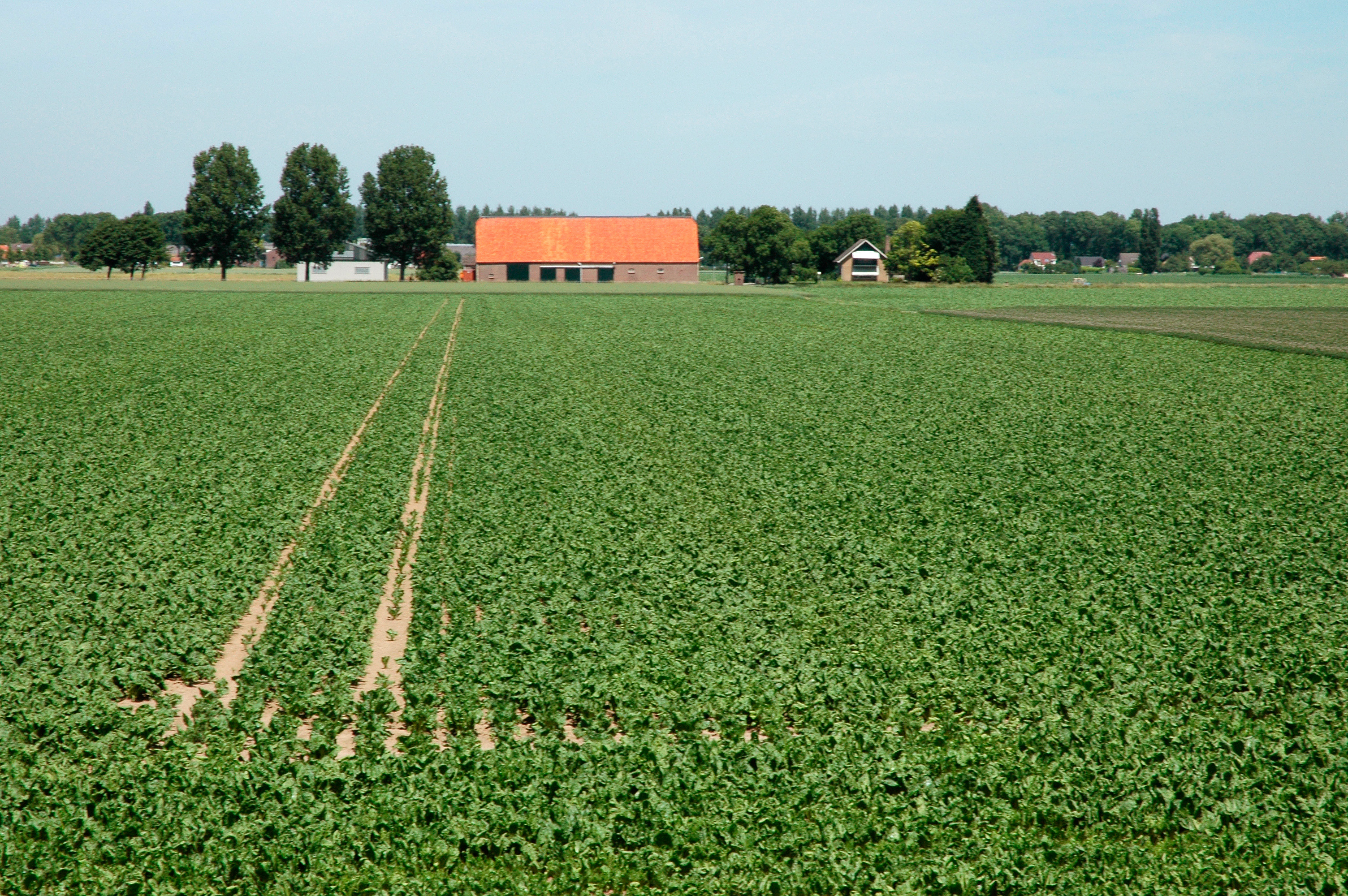 Vanaf de Schuringsedijk zicht op de boerderij aan de Middelweg 27 in Numansdorp.