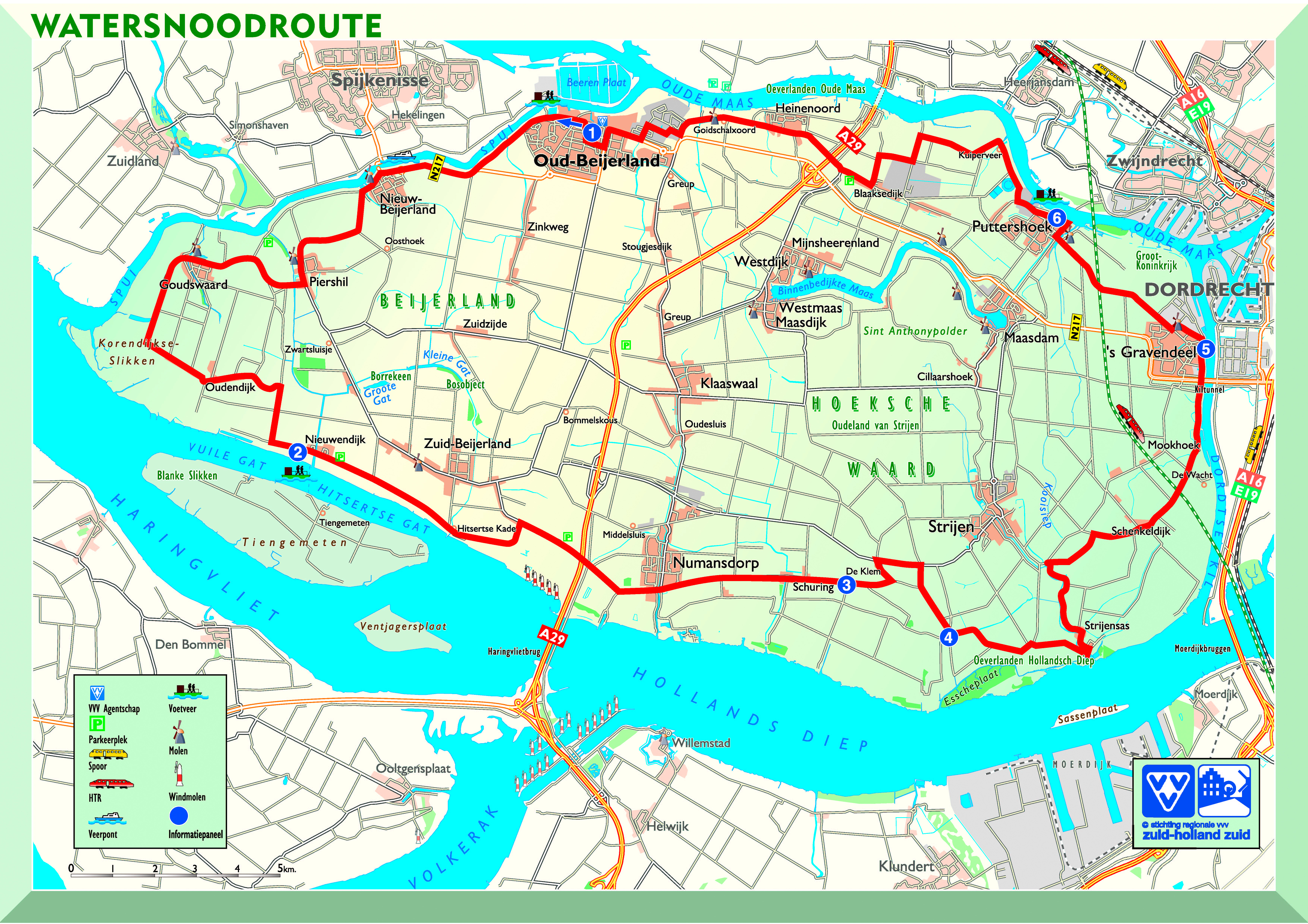 - Kaart van de watersnoodroute in de Hoeksche Waard, in 2003 ontwikkeld door waterschap De Groote Waard en zes gemeenten in de Hoeksche Waard.