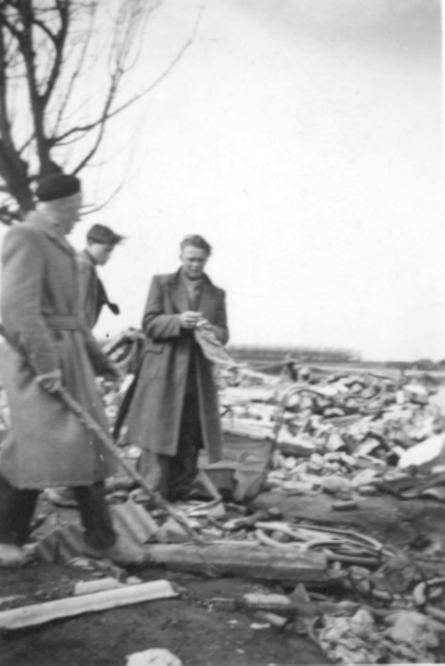 Bas Rustenhoven bij de puinhopen van zijn huis door de watersnood aan de Korte Boomweg …