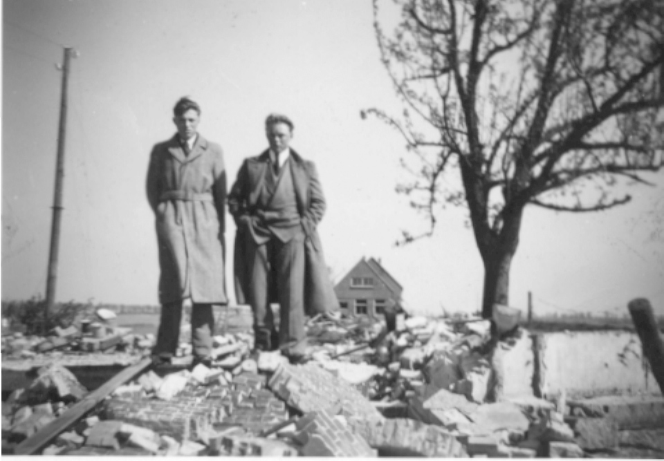 Bas Rustenhoven bij de puinhopen van zijn huis door de watersnood aan de Korte Boomweg …