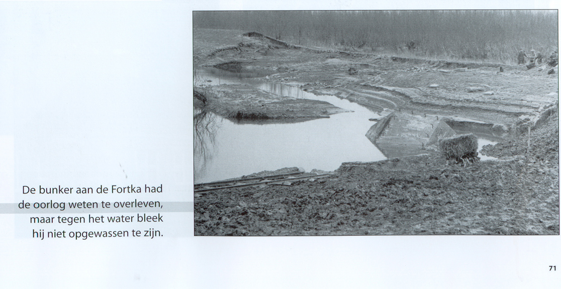 Door de watersnood overspoelde bunker aan de Fortka (heet nu Fortlaan) naast Fort …