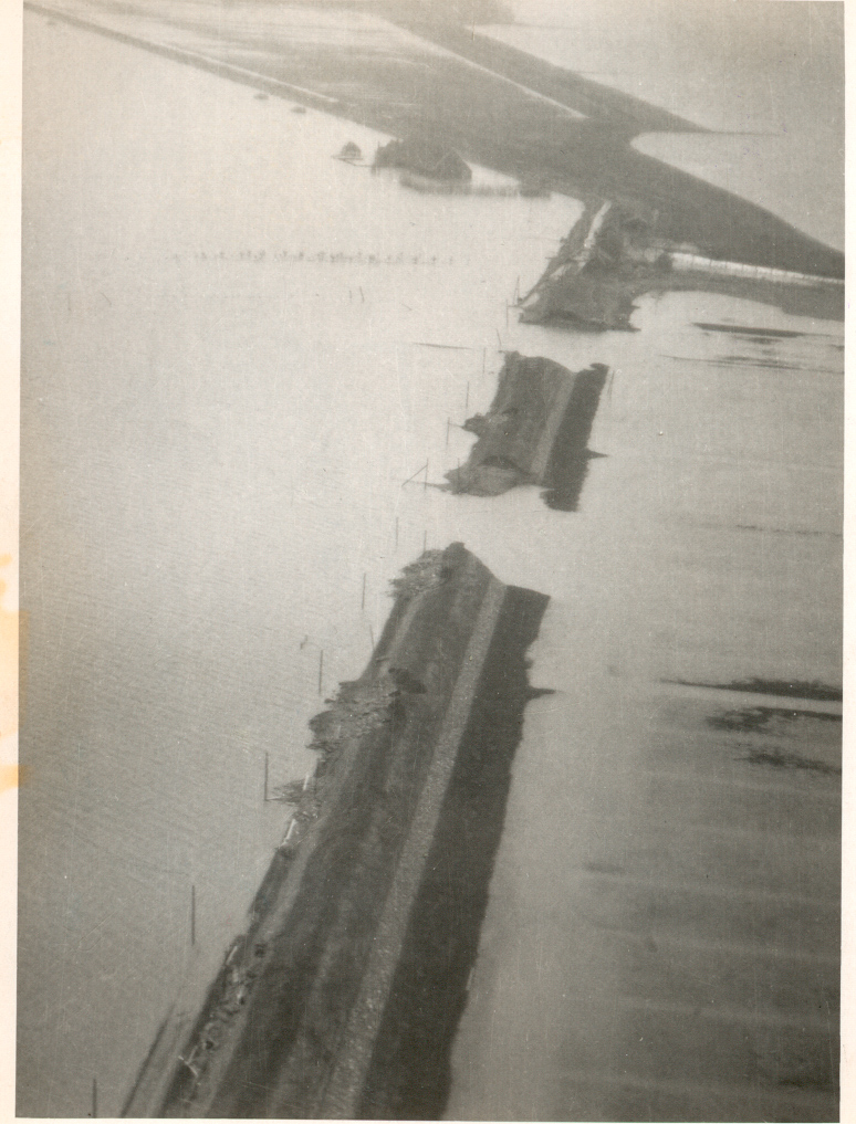 - Luchtfoto van dijkdoorbraak tijdens de watersnood in Numansdorp.