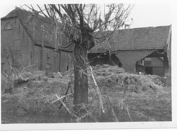 Beschadigde boerderij door de watersnood in Klaaswaal of in Numansdorp.