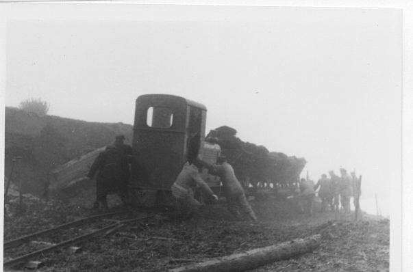 - arbeiders / werklieden locomotieven spoorrails watersnood
