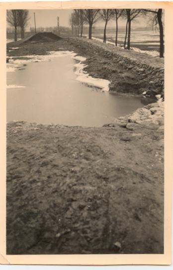 Ondergelopen land tijdens de watersnood in Klaaswaal of in Numansdorp.