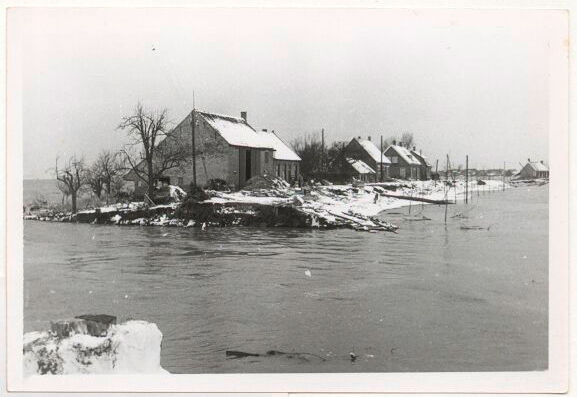- De Schenkeldijk bij de Zuidachterweg in Zuid-Beijerland tijdens de Watersnood.