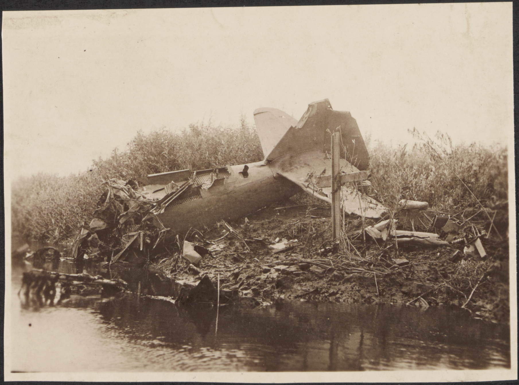 Het wrak van een Britse jachtvliegtuig dat op 13 mei 1940 werd neergeschoten en aan de oostkant van polder Turfzak in de Brabantse Biesbosch.