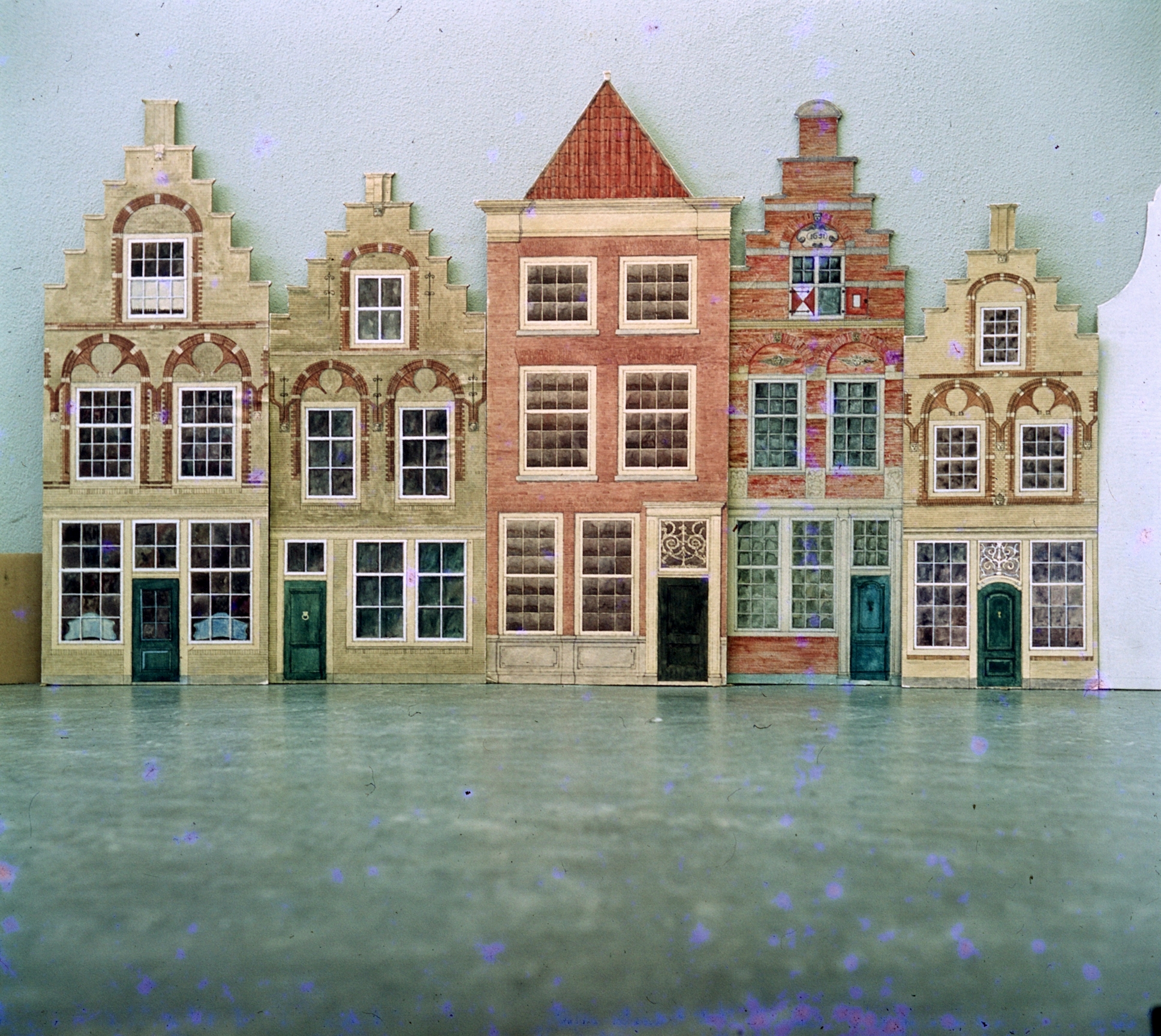 - Tekening in kleur van de monumentale panden in de Hofstraat.