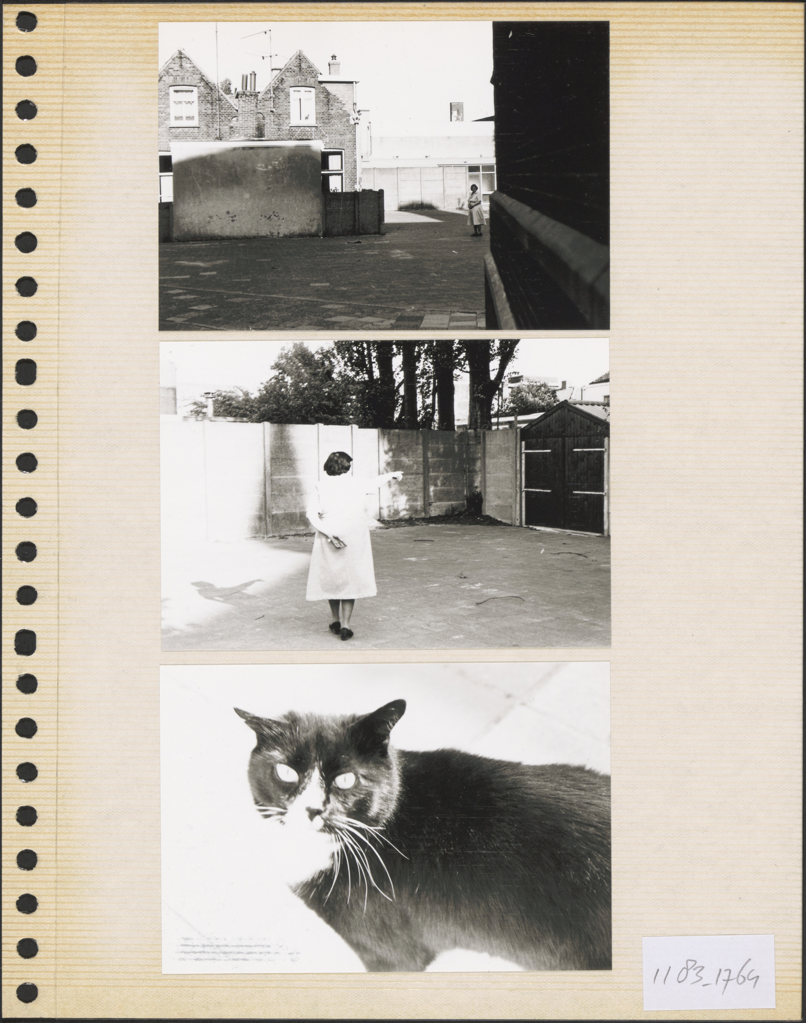 Foto is genomen op het schoolplein van de R.K. Sint Jozef jongensschool ingang Nicolaas Maessingel richting achterkant van de laatste twee huisjes aan het Latourpad. In het hoekpand woonde de familie van der Vorm. Rechts op de eerste foto is de achterkant van de R.K. Kerk aan de Burg. de Raadtsingel. Zie 1183_1366.