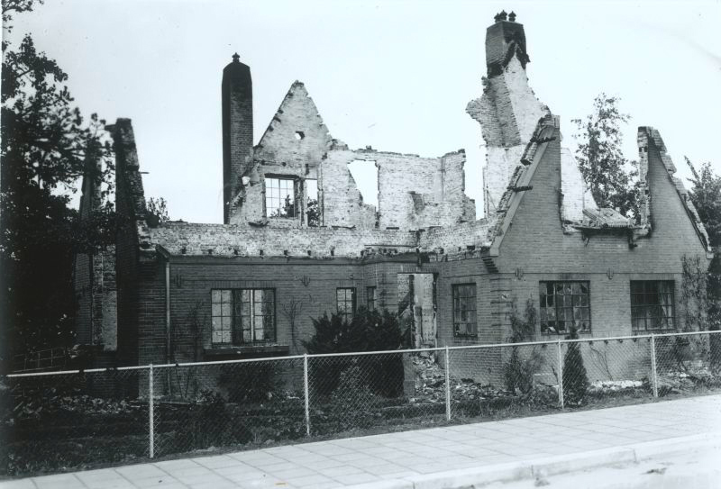 Het woonhuis van Dhr. Koopman aan de Rijksstraatweg 95 ter hoogte van de Glazenstraat. Het huis werd vernietigd door de gevechten tussen Nederlandse militairen en Duitse parachutisten in mei 1940. Meidagen 1940