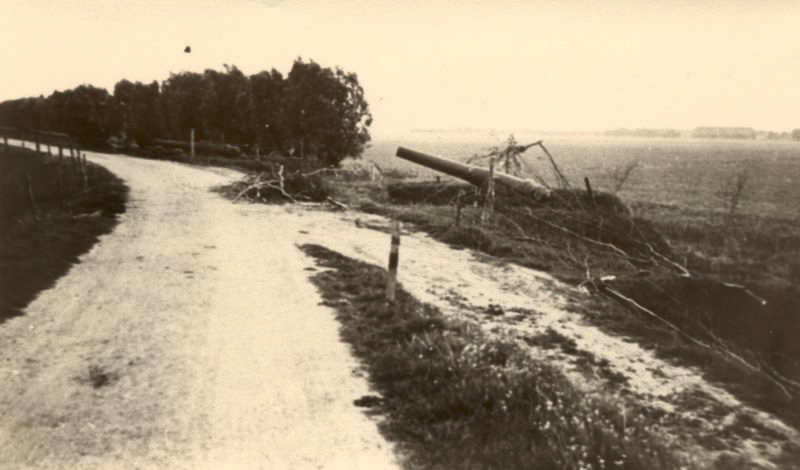 Een batterij 15 lang staal geschut. Deze stokoude kanonnen stonden opgesteld in de Hoeksche Waard en waren onderdeel van de 25 AA ( Afdeling Artillerie ).