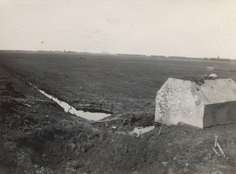 Een Nederlandse type P kazemat met enige schade. Vermoedelijk ergens op het eiland van Dordrecht of in de Hoeksche Waard in mei 1940 - meidagen 1940 Zie foto 1183_2125