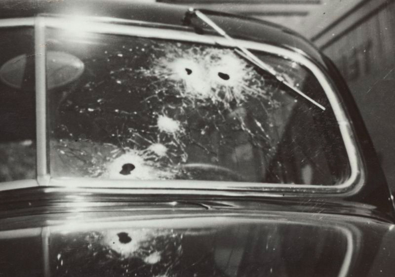 Kogelgaten in de vooruit van de taxi van Eden die Burgemeester Bleeker vervoerde. Hij probeerde op 10 mei 1940 een neergeschoten man te redden bij de Krispijntunnel ter hoogte van het van Baerleplantsoen door zijn chauffeur opdracht te geven er naartoe te rijden. Duitse parachutisten vuurde op de auto waarbij de Burgemeester gewond raakte aan zijn schouder.