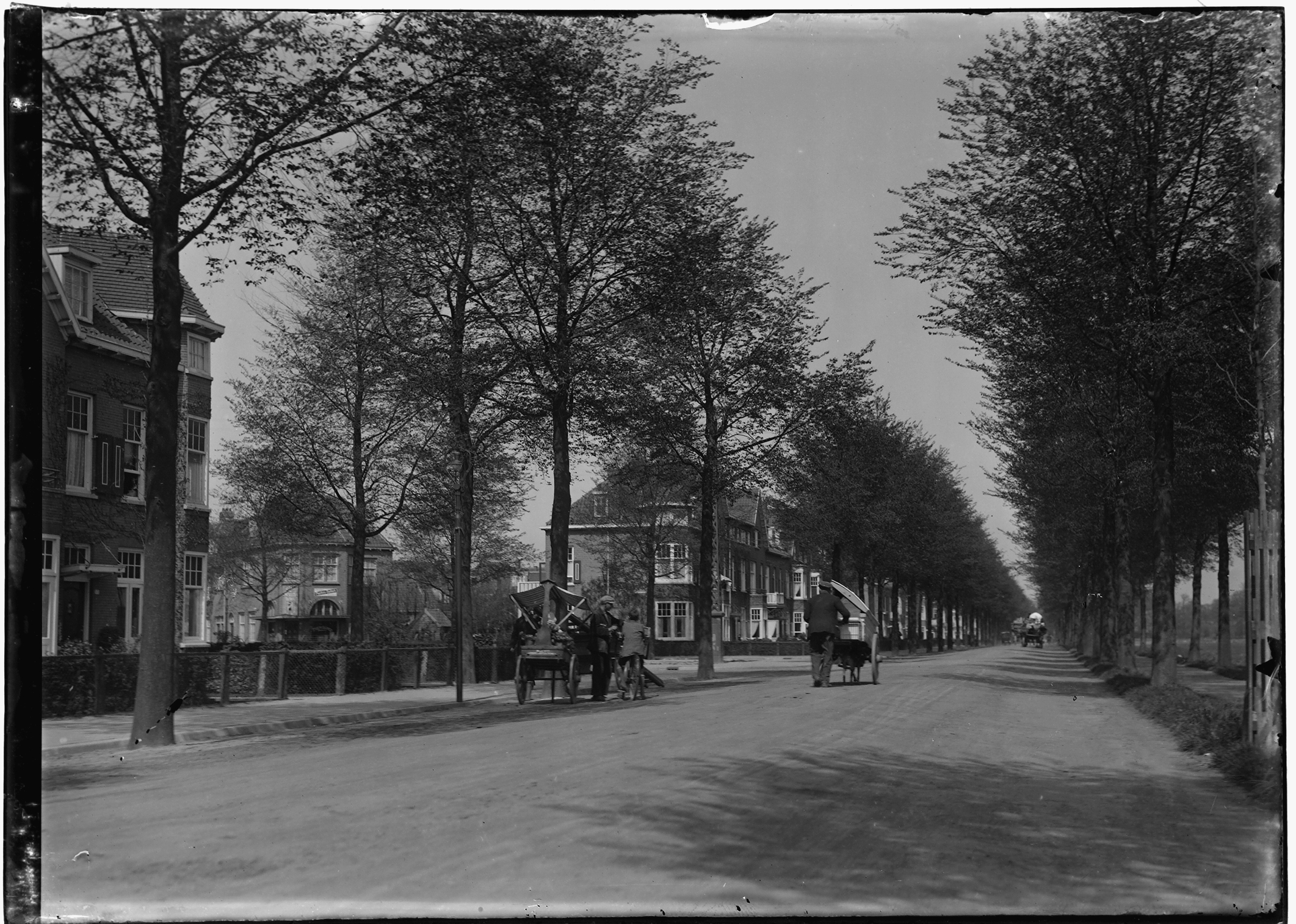 Krispijnseweg in noordelijke richting. Het J.P. Heijeplein ligt links in het midden.