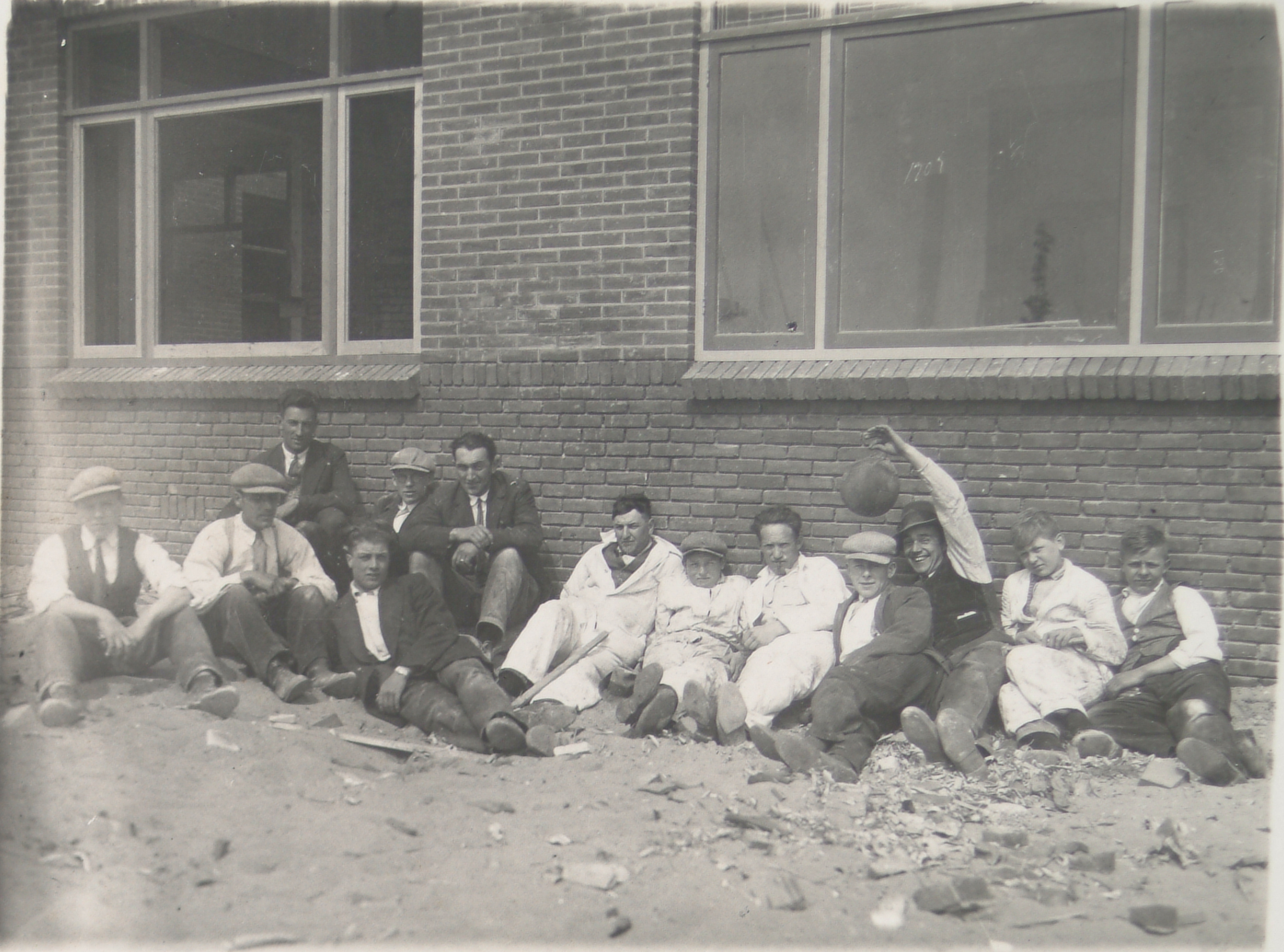 Dit betreft m.i. geen bouwvakkers aan de Weedeweg maar aan de 3- laagse woningen aan de Standhasenstraat - Westzijde tussen de Craijensteinstraat en school de Repelaer. De doorlopende rollaag bij de onderdorpels van de kozijnen op de foto is gemakkelijk te herkennen middels streetview.
