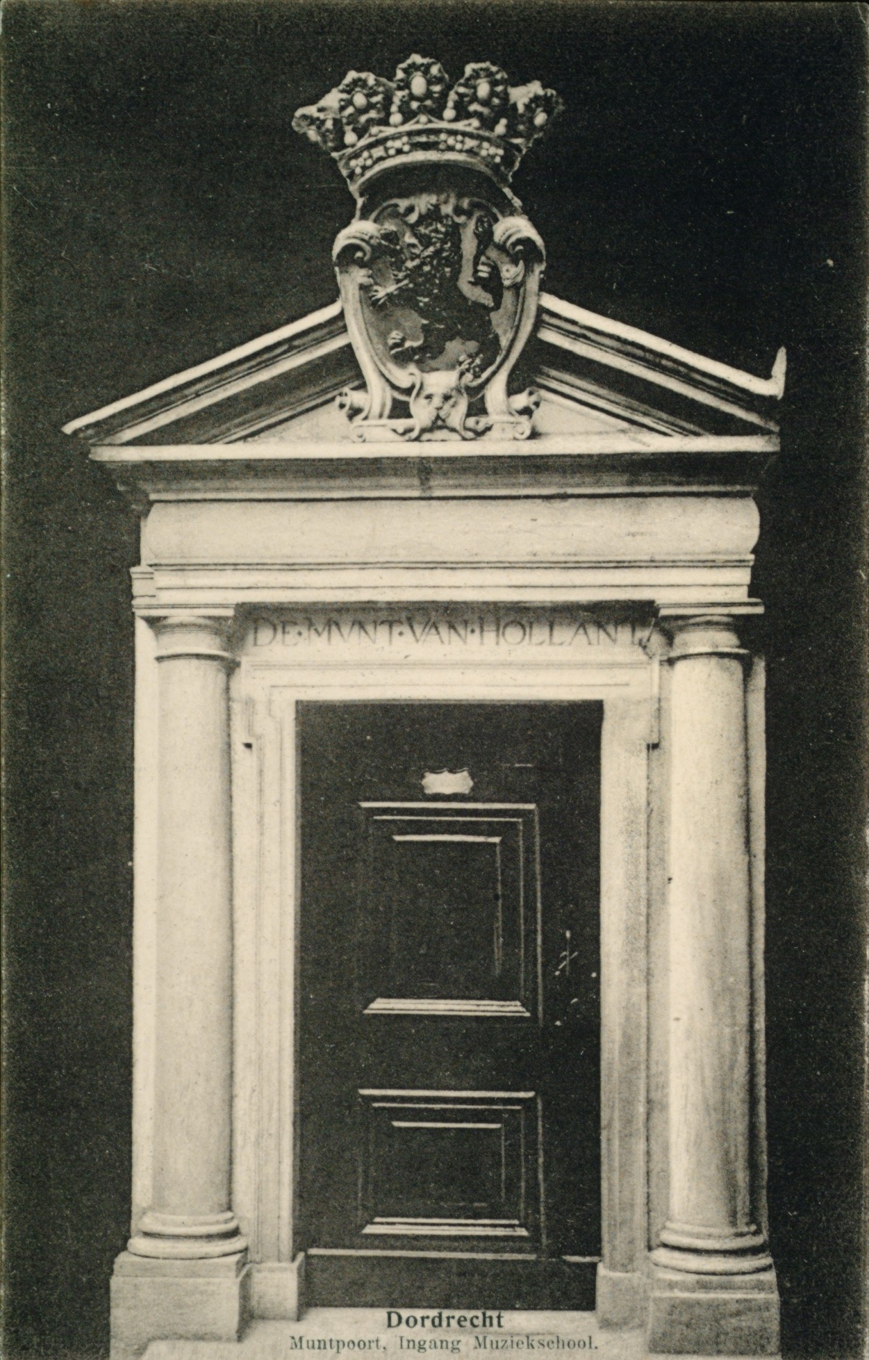 - De ingang van de voormalige Munt op de Voorstraat te Dordrecht.