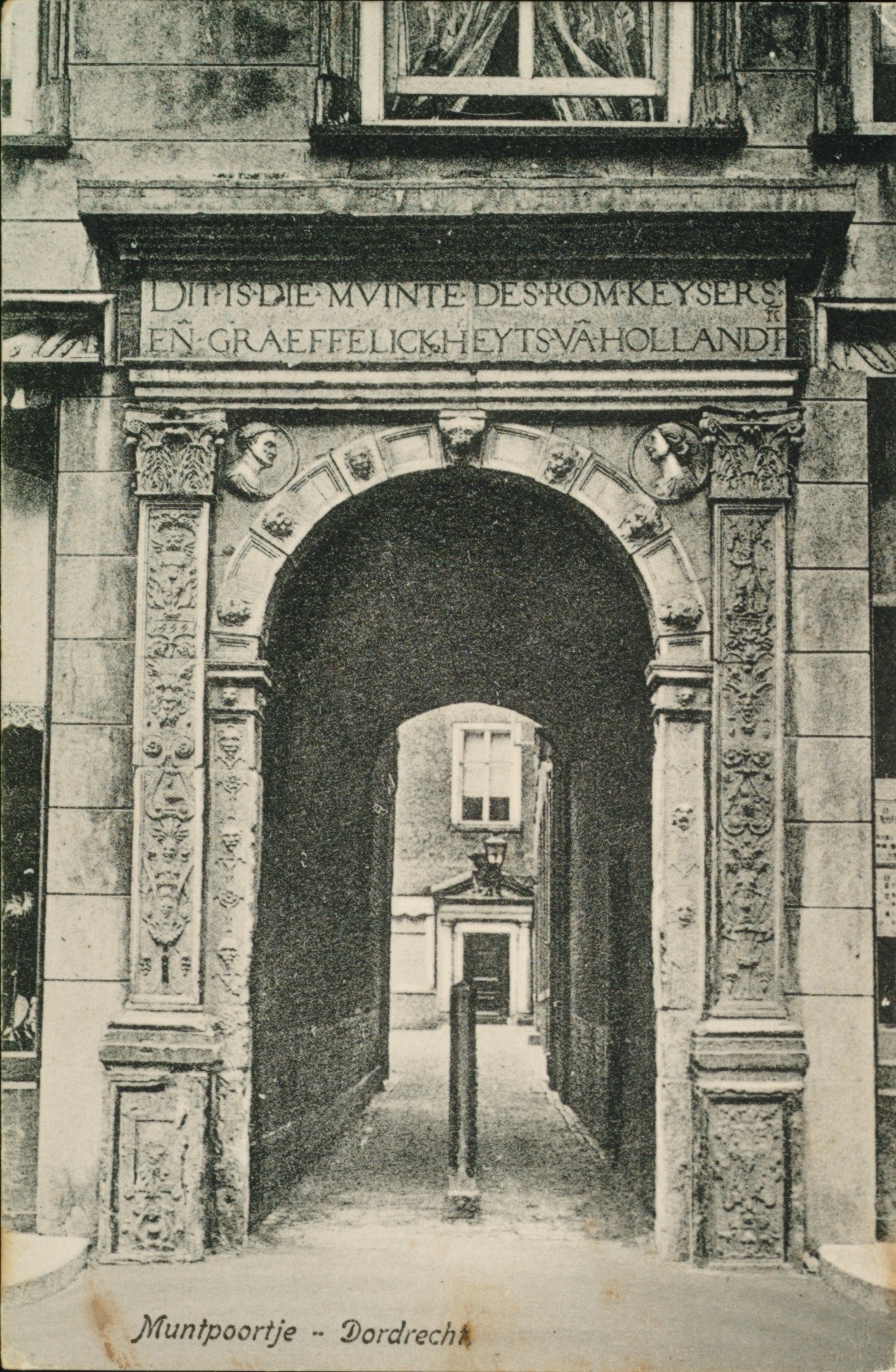 - De ingang van de voormalige Munt op de Voorstraat te Dordrecht.