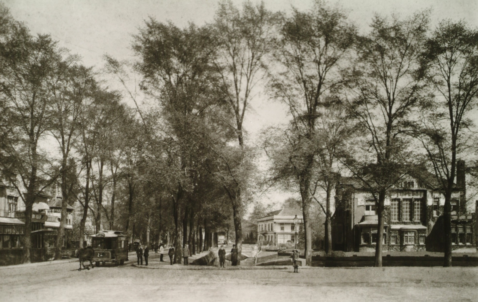 - Links is een deel van Hotel Ponsen zichtbaar en achter Simpang ligt Huize "St. Anna".