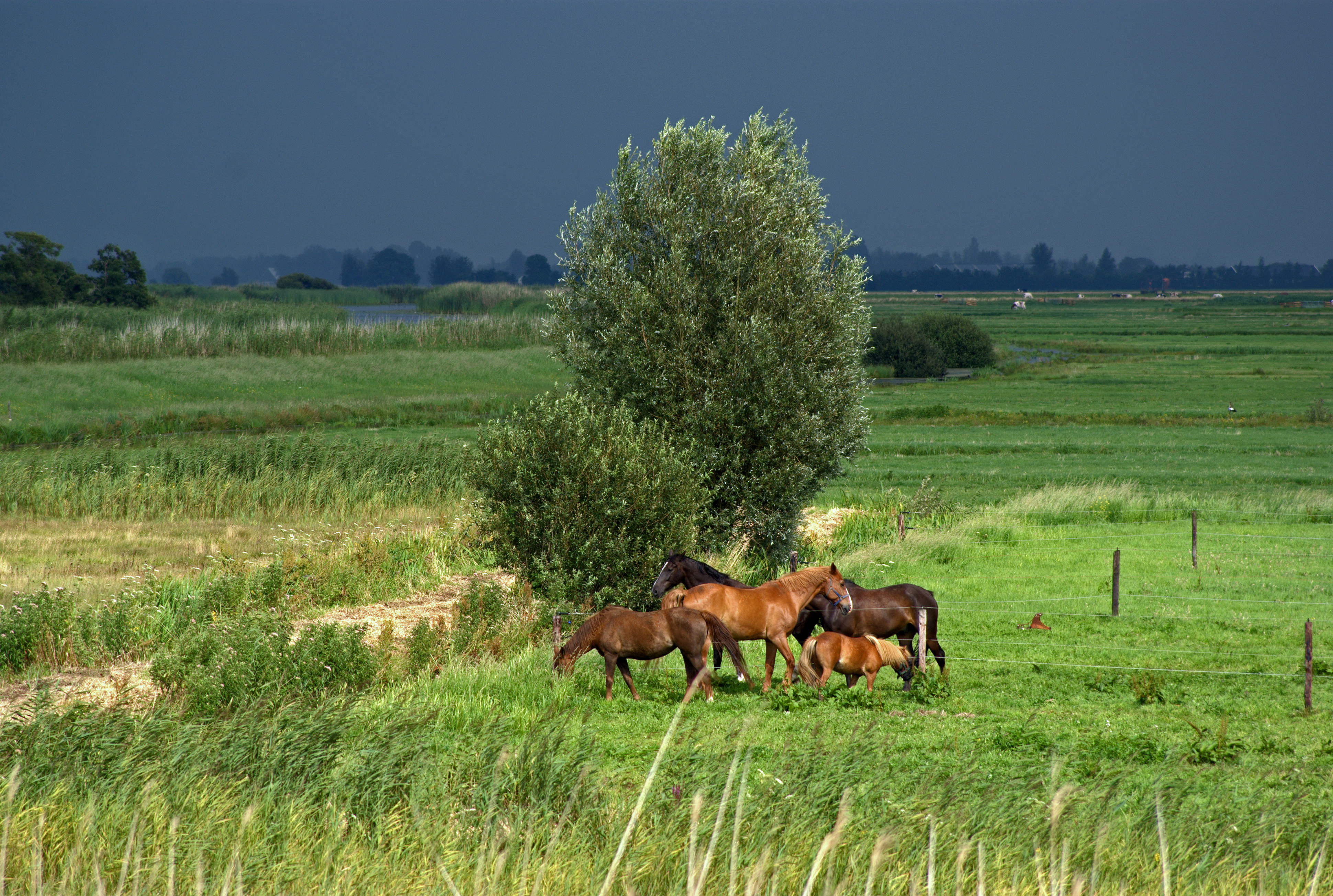 De paarden zagen weersverandering, en bleven bij elkaar.. Plaats : Een weiland naast de in 1365 gegraven Groote of Achterwaterschap, vlakbij de Zijdeweg.