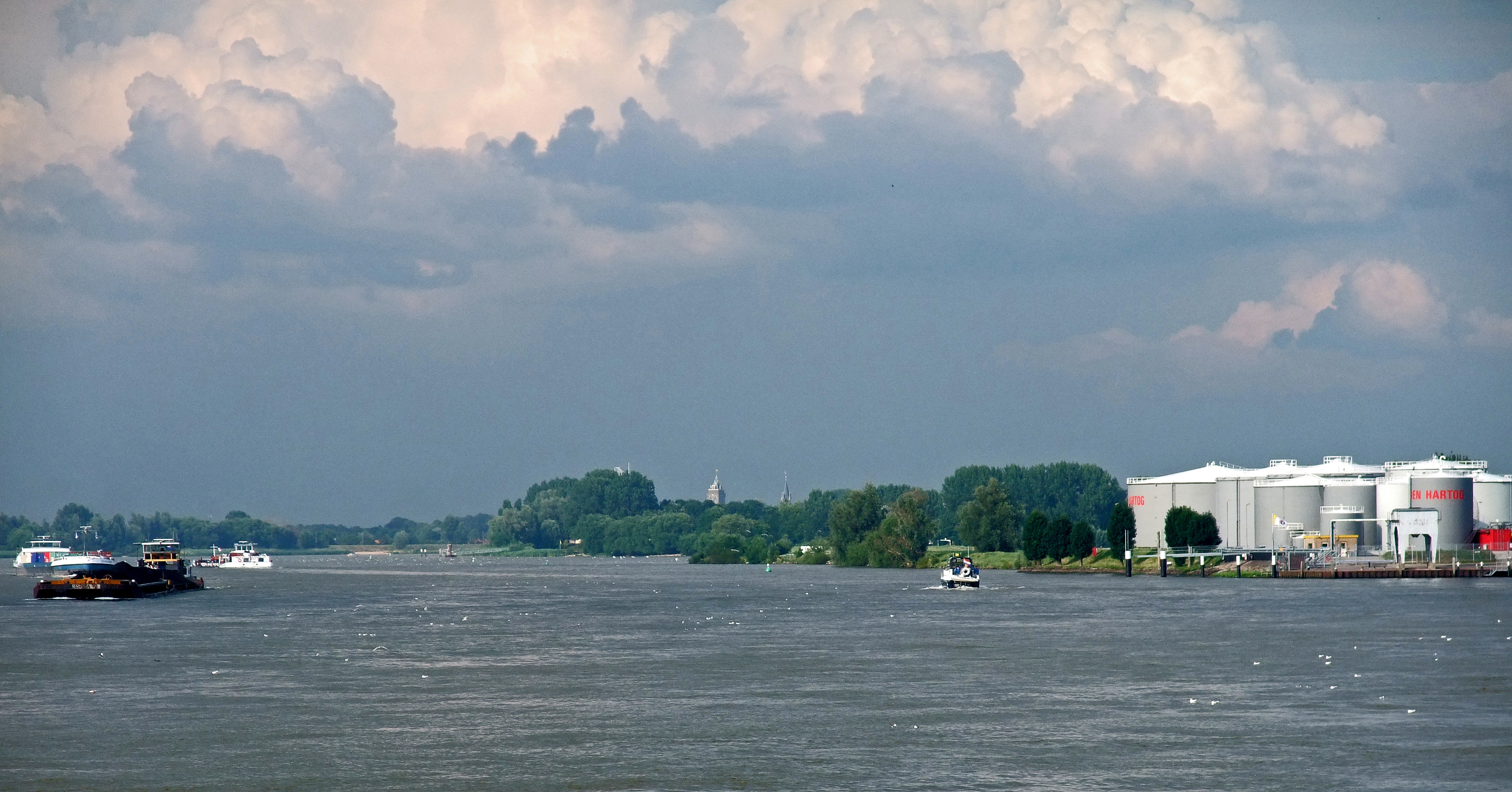 De Lek bij Groot Ammers/Ammerstol, stroomopwaarts gezien.