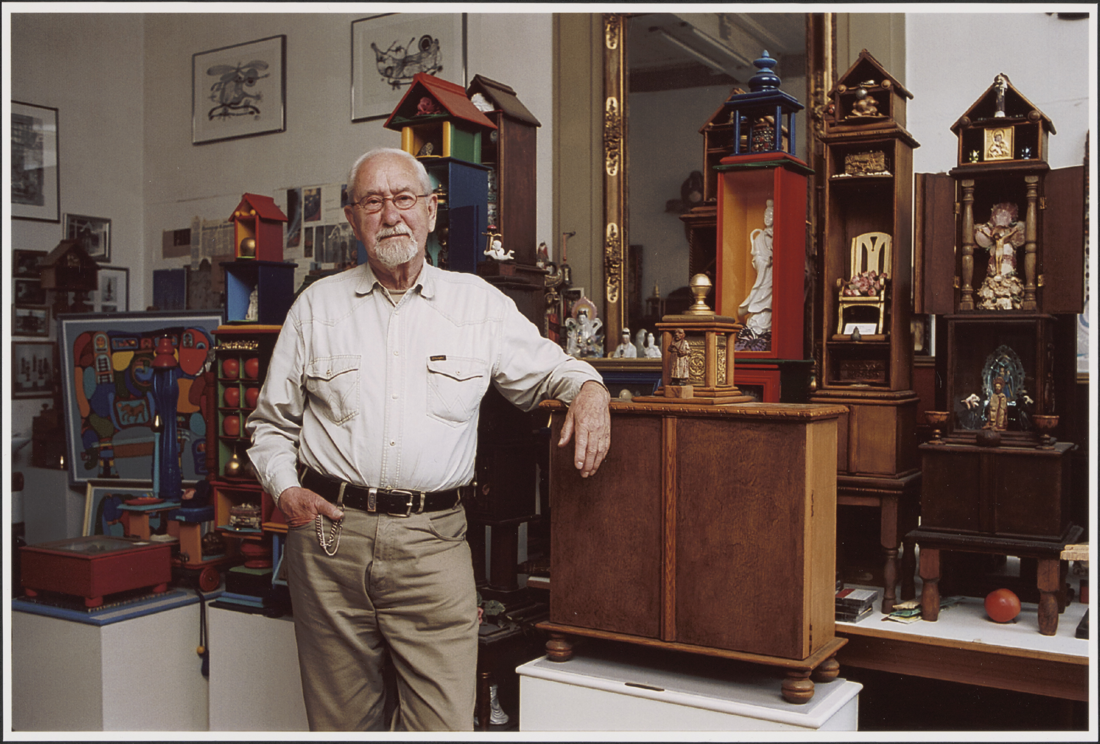 Beeldend kunstenaar Cees Schellenberg in zijn atelier in gebouw Pictura.
