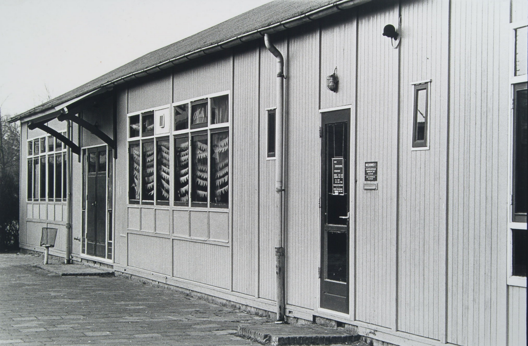 Noodgebouw van wijkopbouworgaan Dordrecht Zuid aan de Nolensweg