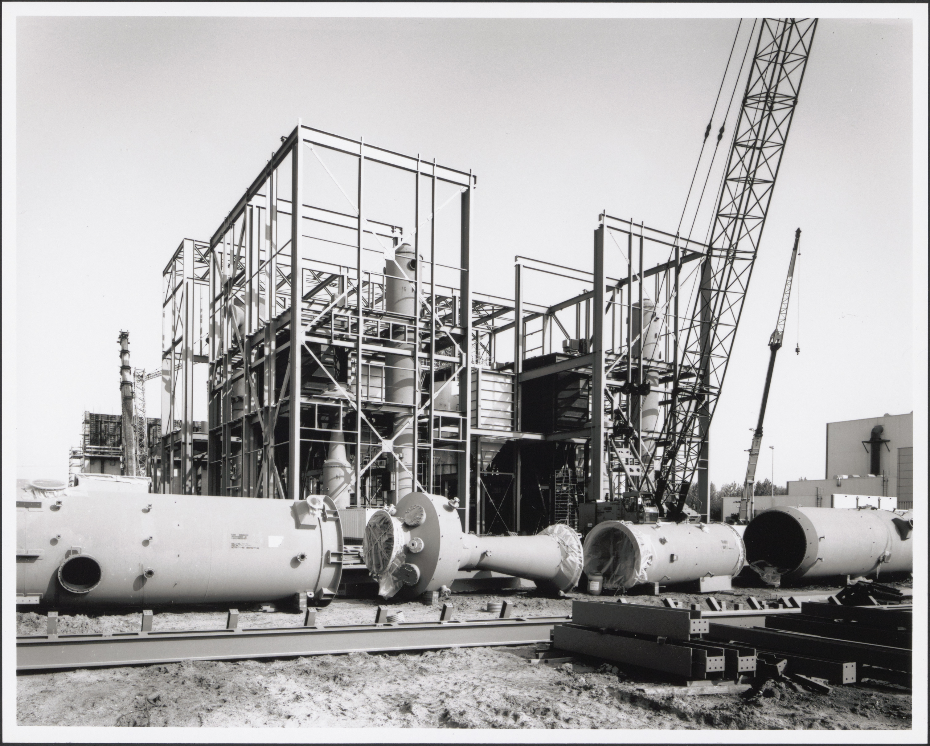 Bouw van de slibverbrandingsinstallatie aan de Baanhoekweg.
