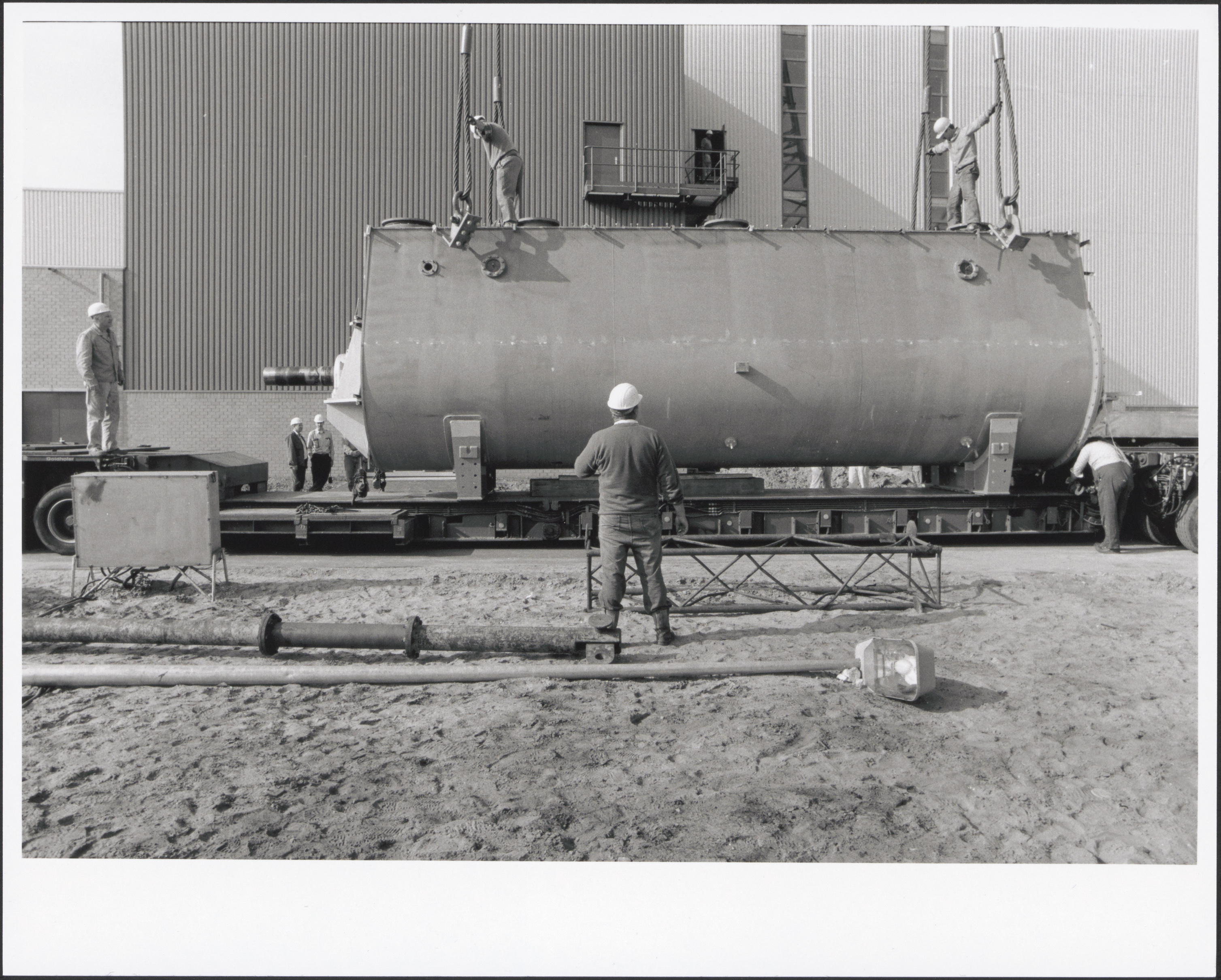 - Aankomst van de slibdroger bij de bouw van de slibverbrandingsinstallatie aan de Baanhoekweg.