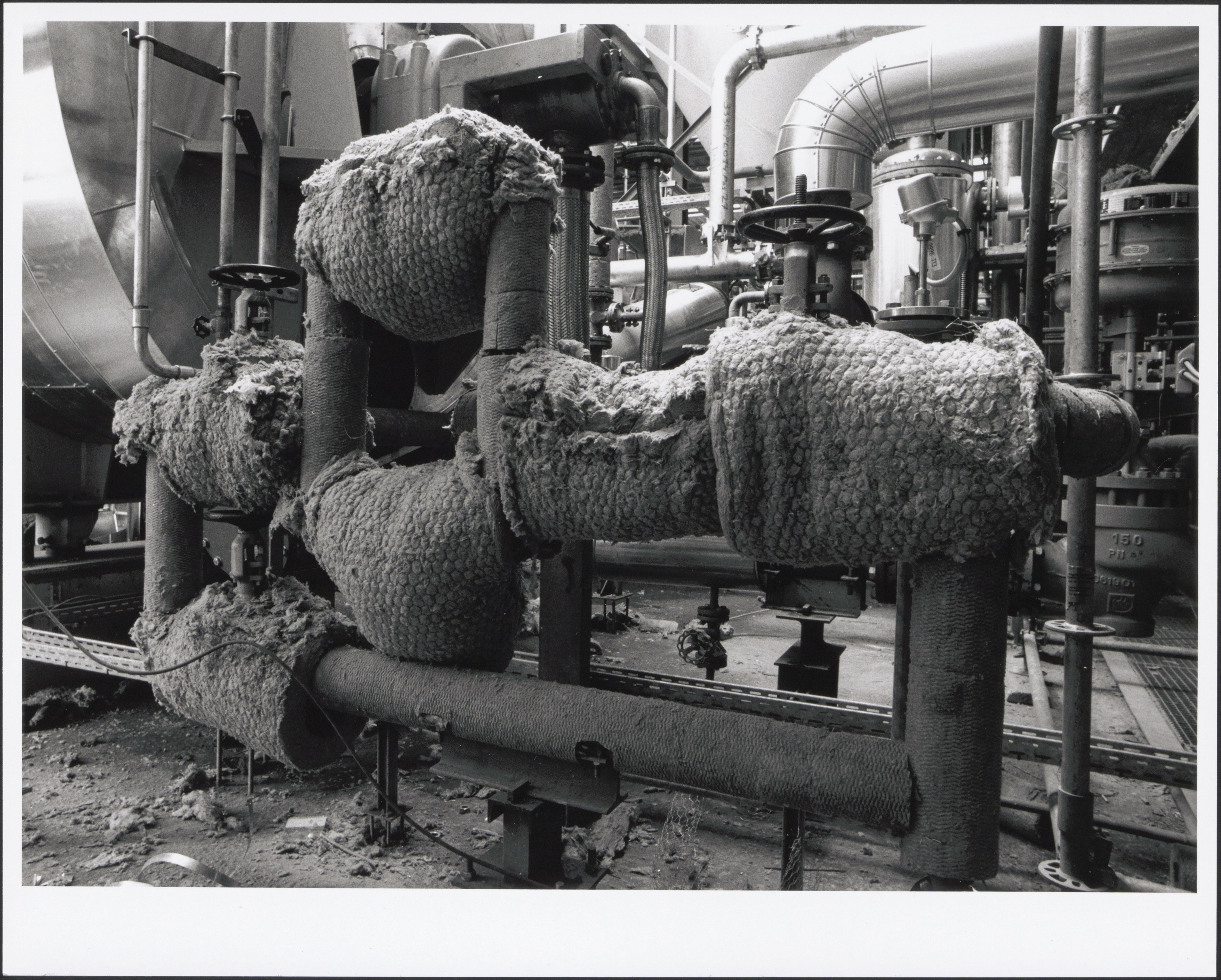 Om energieverlies zoveel mogelijk te beperken worden de stoomleidingen naar de slibdroger fors geïsoleerd.
