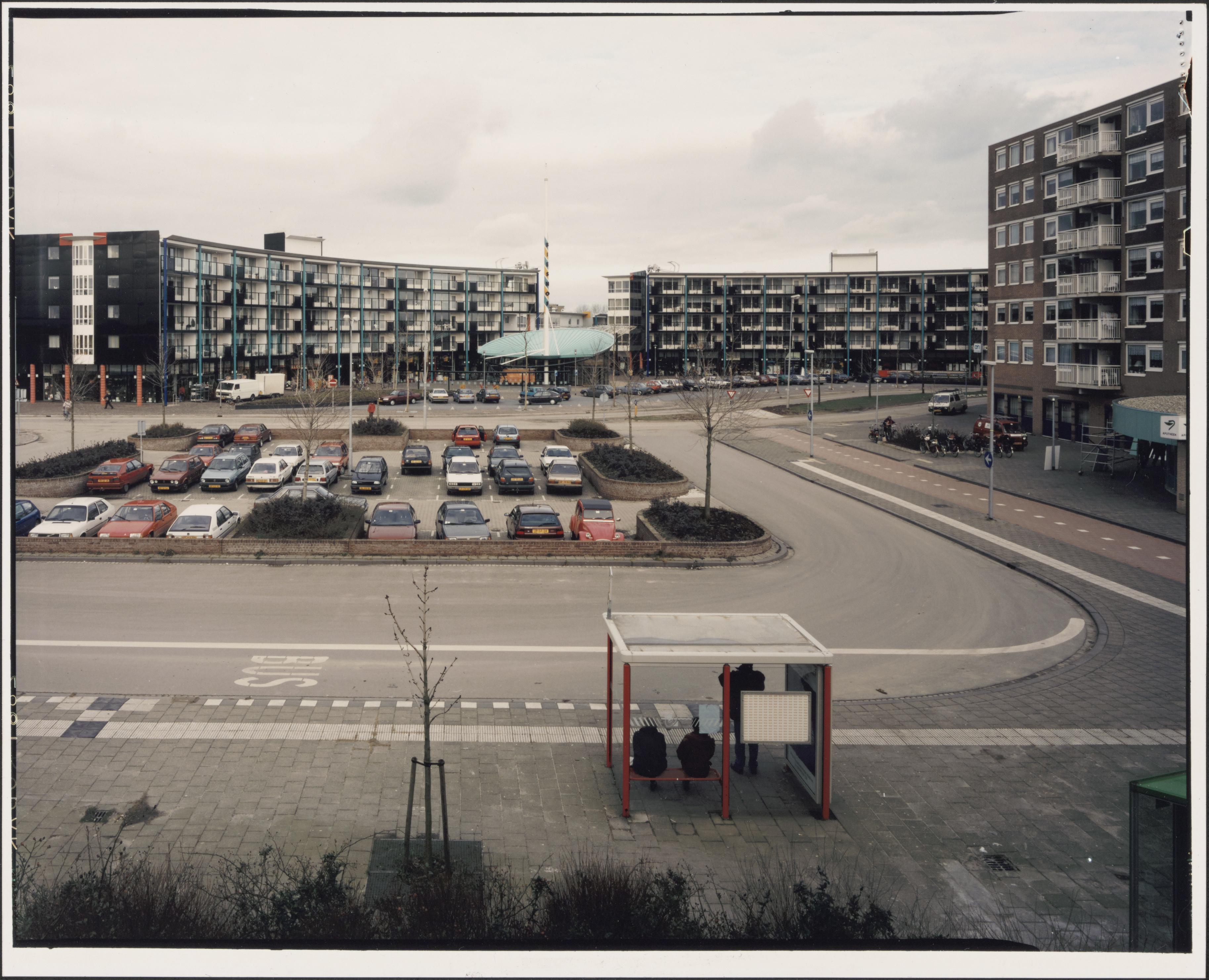 - Parkeerplaatsen op het Dudokplein, op de achtergrond winkelcentrum De Bieshof.