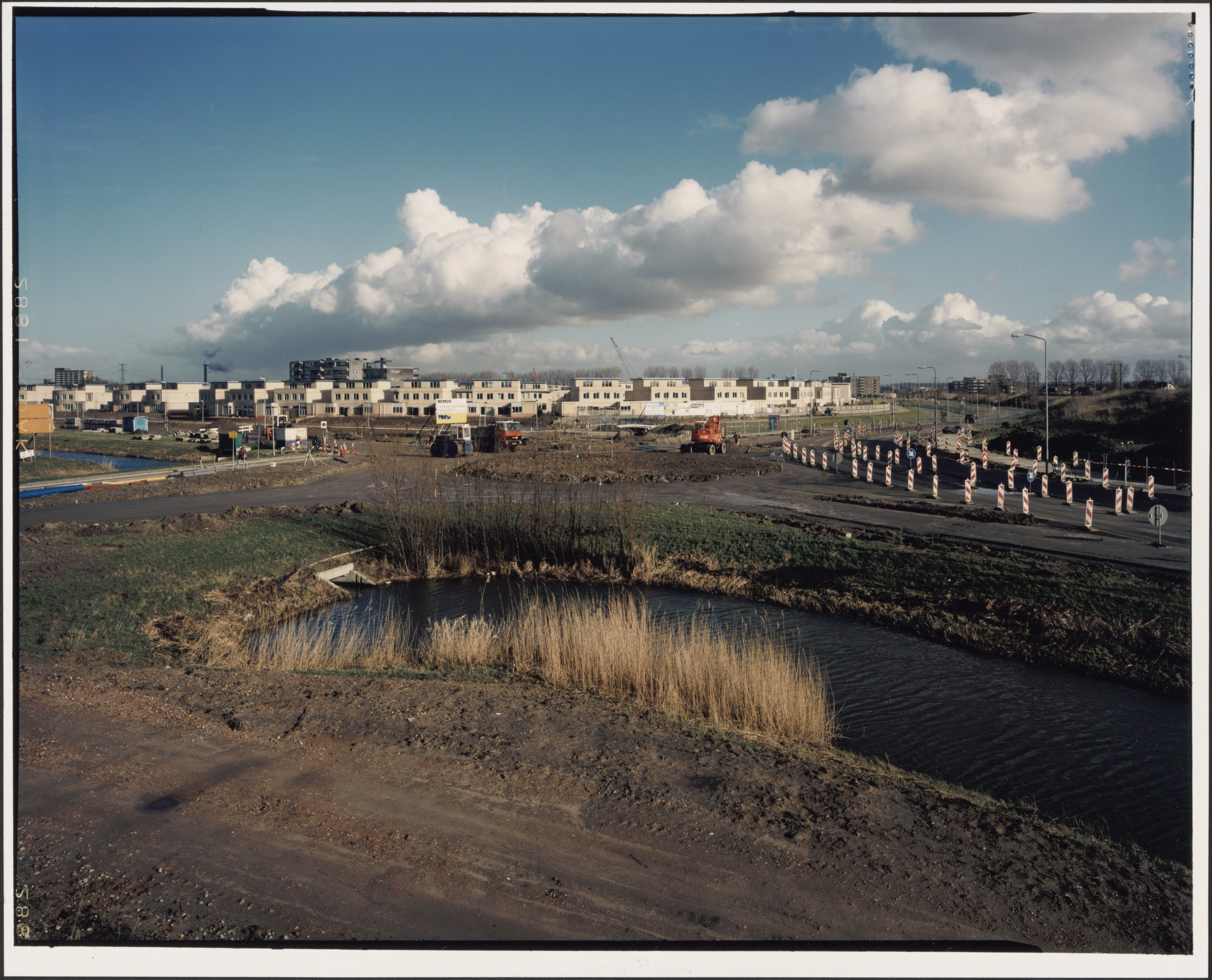 De aanleg van de rotonde in de Groenezoom, gezien vanaf de Jan Valsterweg. Links de …