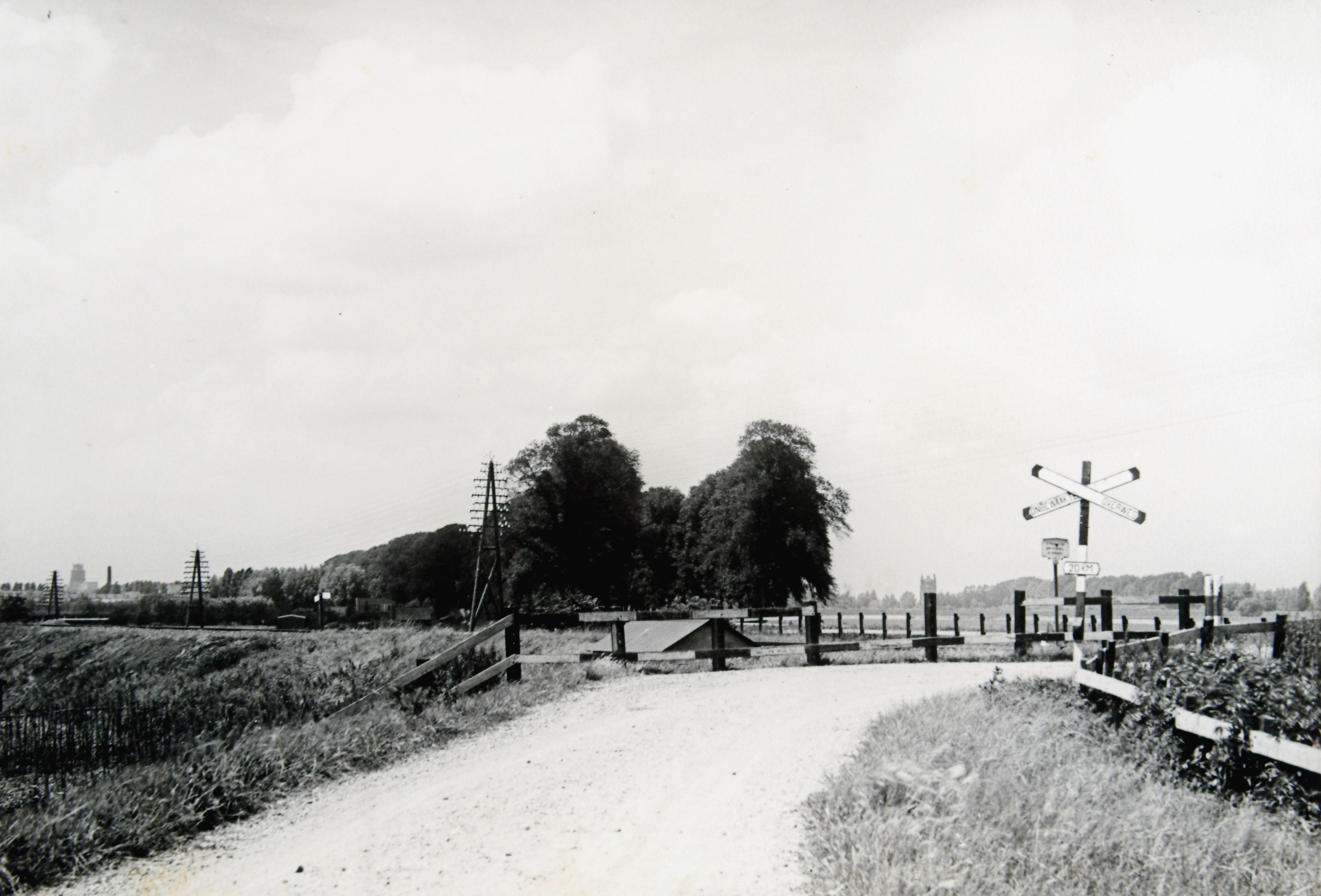 Onbewaakte spoorwegovergang aan de Noordendijk, naar de stad gezien.