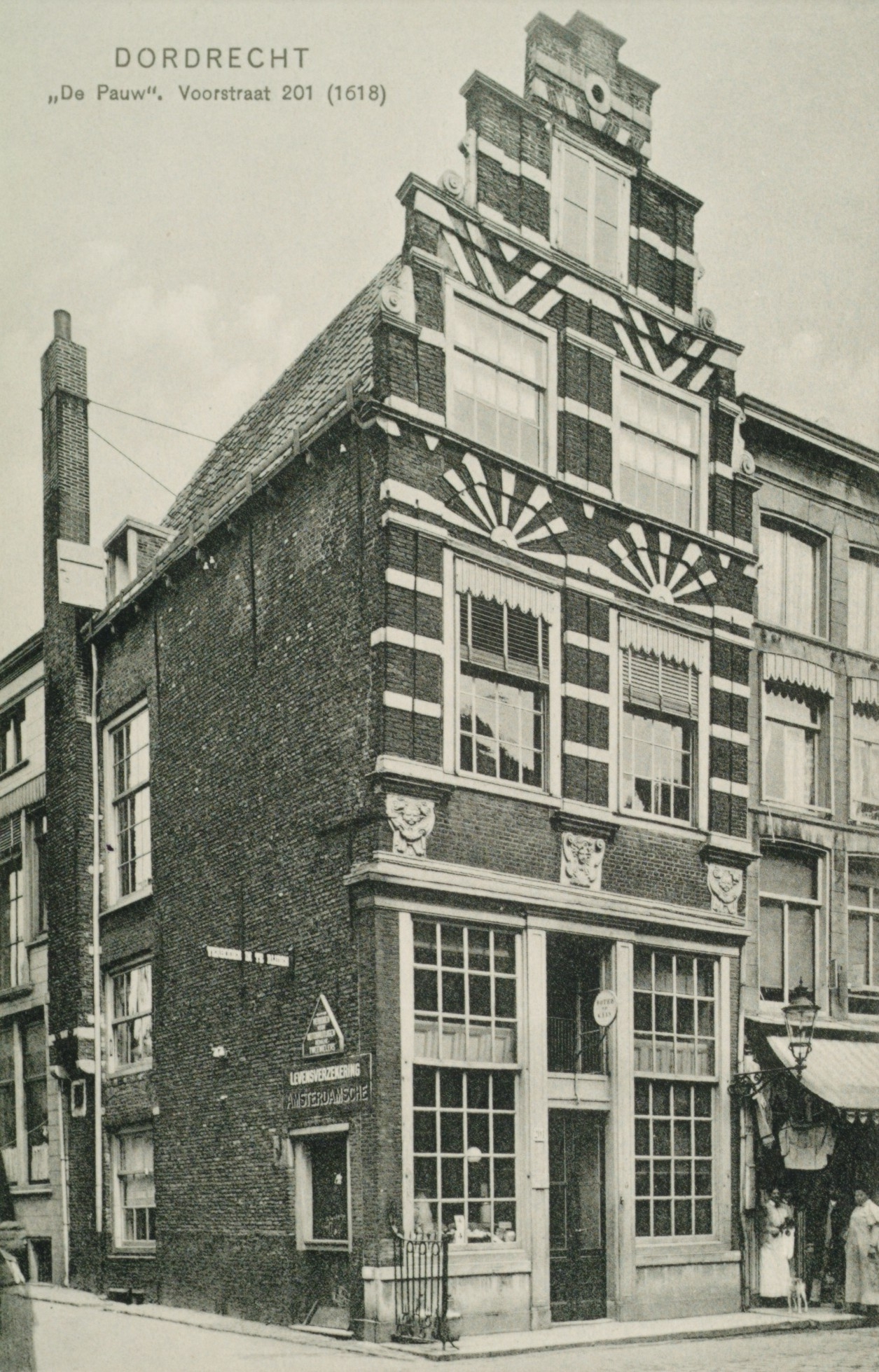 - De Voorstraat tussen Nieuwbrug en Scheffersplein. Gevel van het huis "De Pauw".. Foto H.J. Tollens C.Hzn.