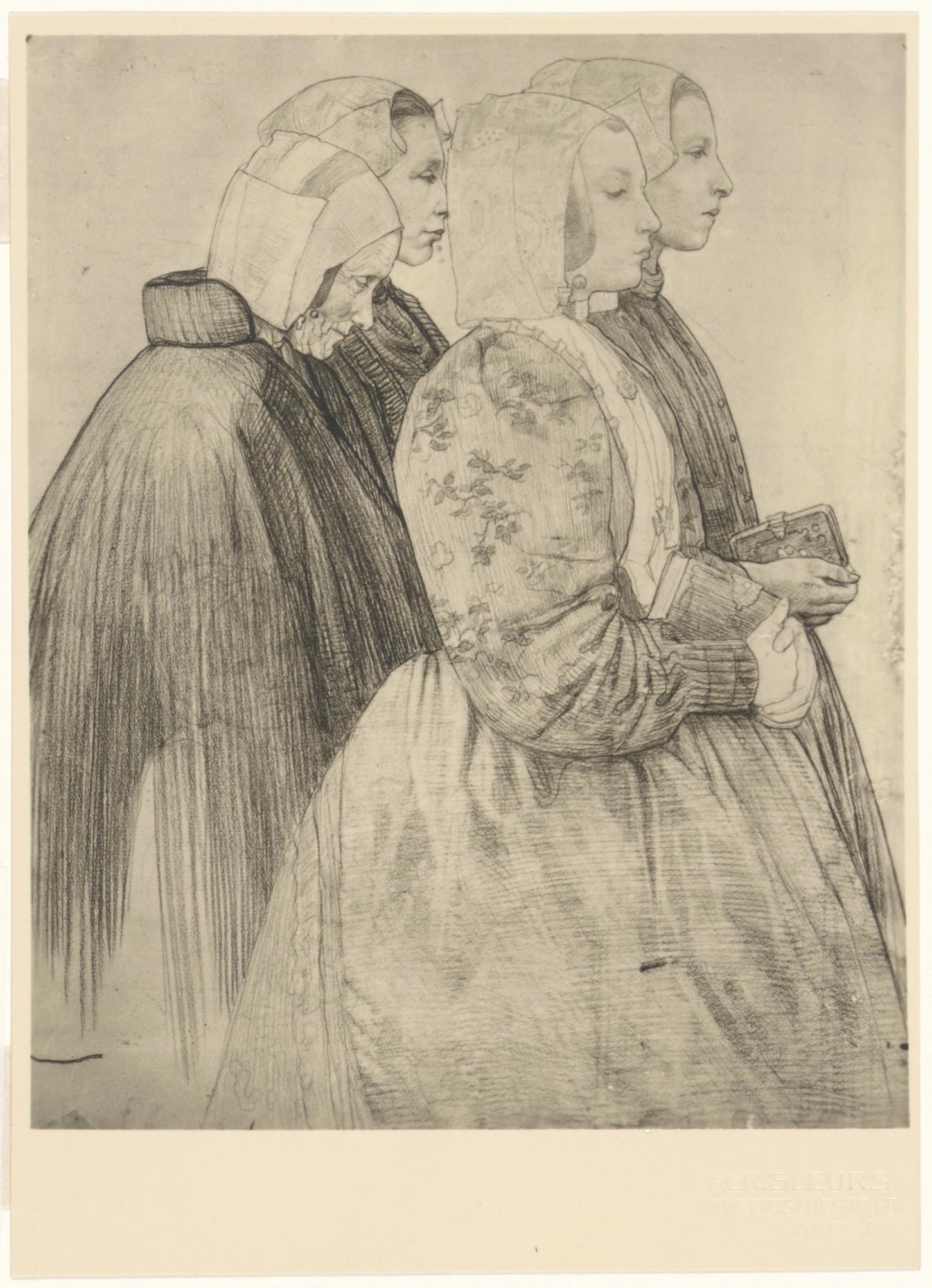 - Foto van een tekening van Wally Moes van vier vrouwen