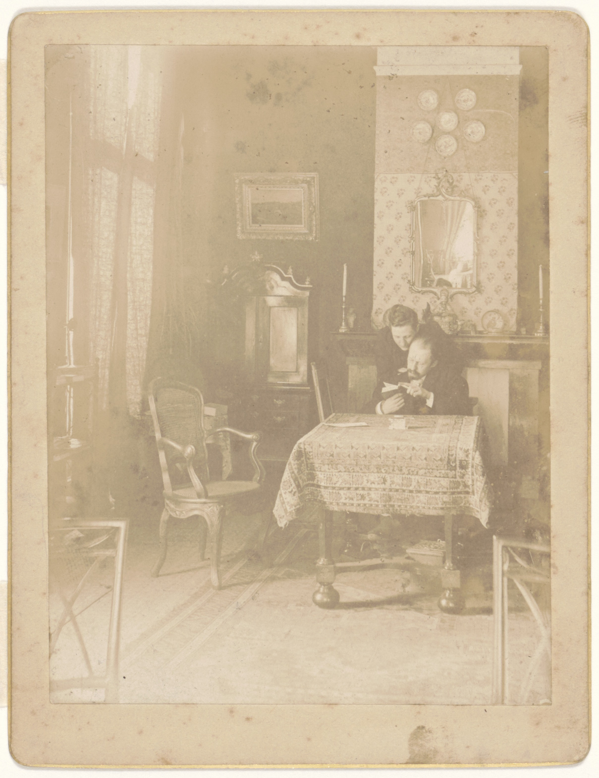 - Foto van Jan Pieter Veth en Anna D. Veth-Dirks in de zitkamer van het huis Parklaan 33 te Bussum
