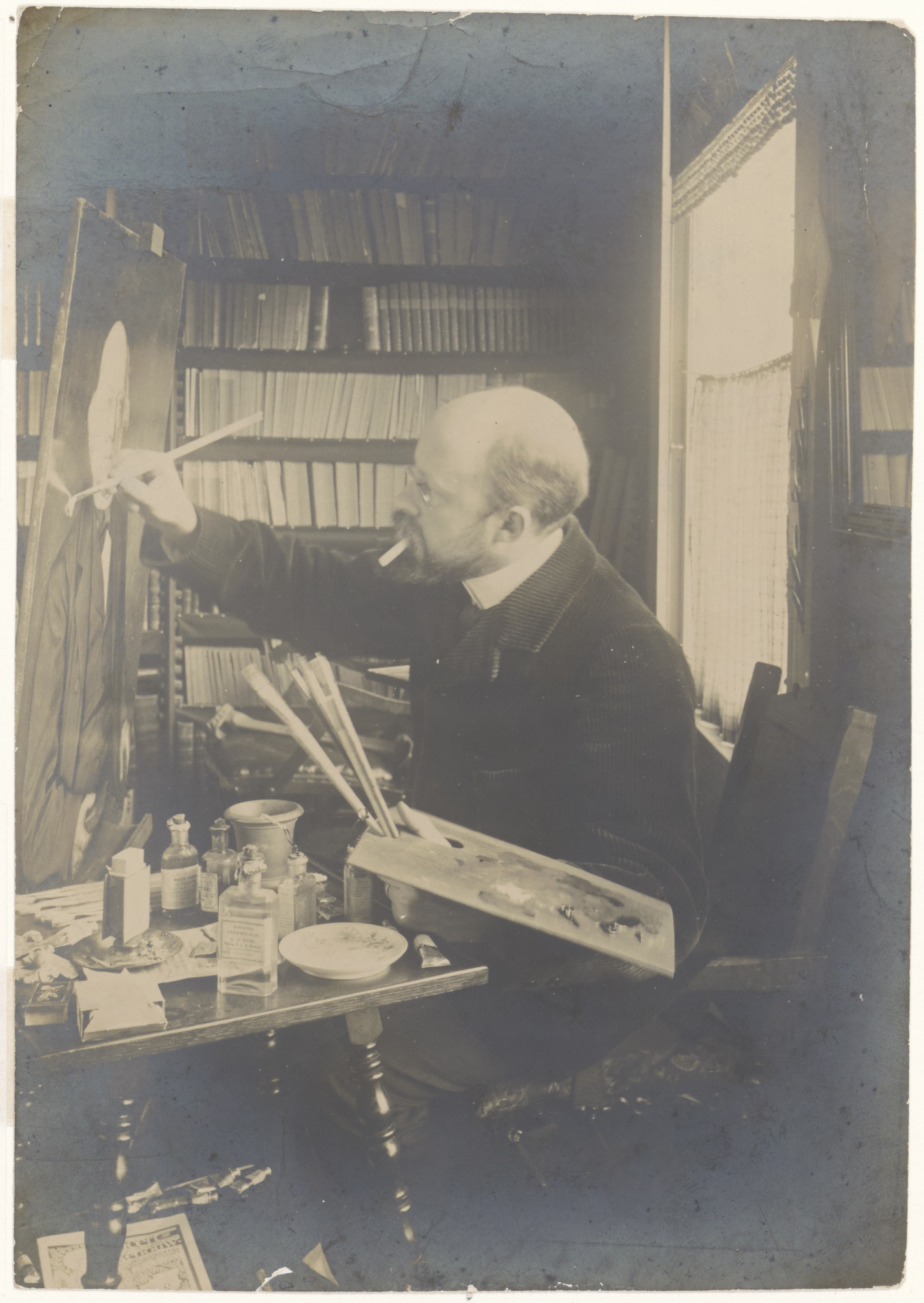 Foto van Jan Pieter Veth bezig in zijn atelier