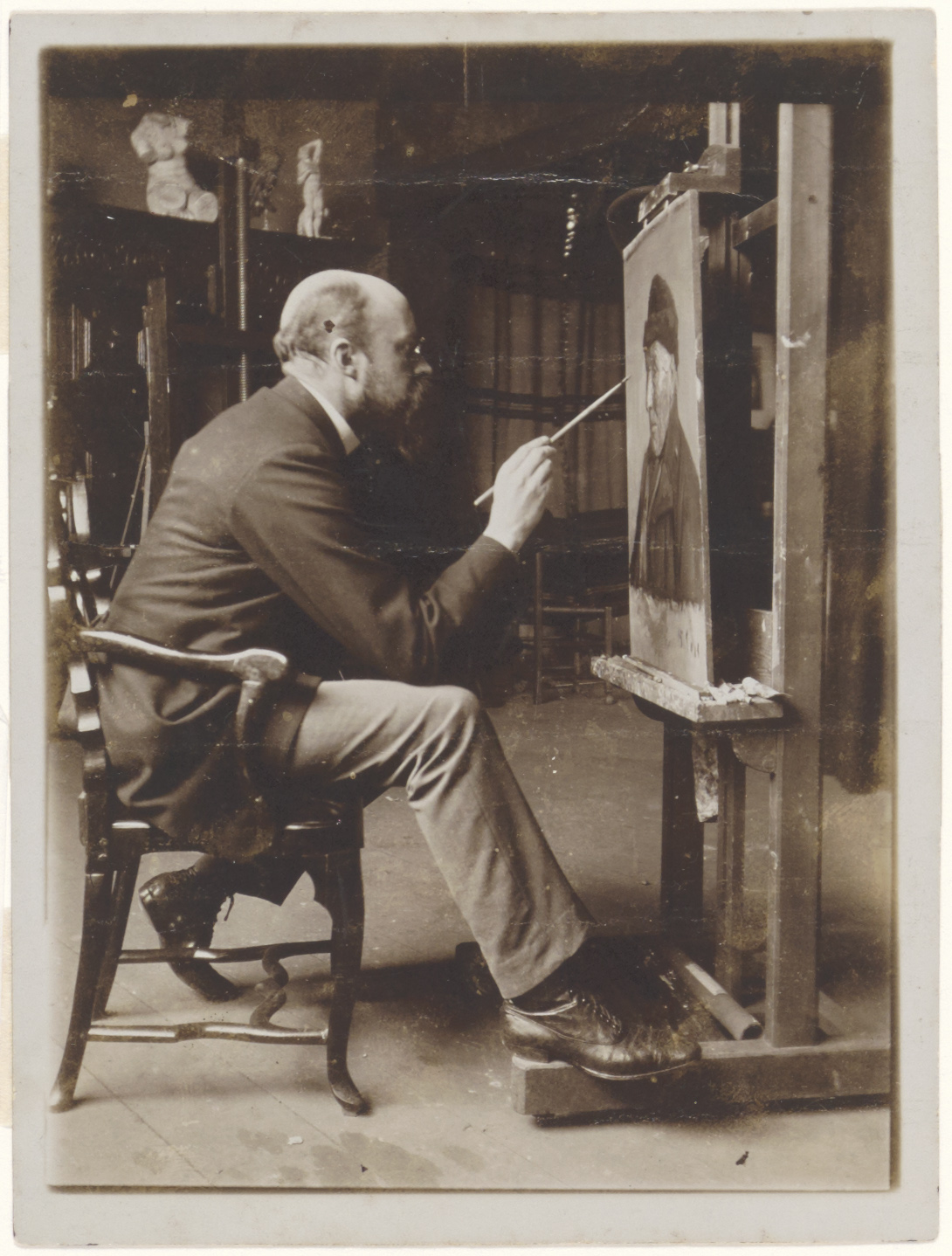 Foto van Jan Pieter Veth bezig in zijn atelier
