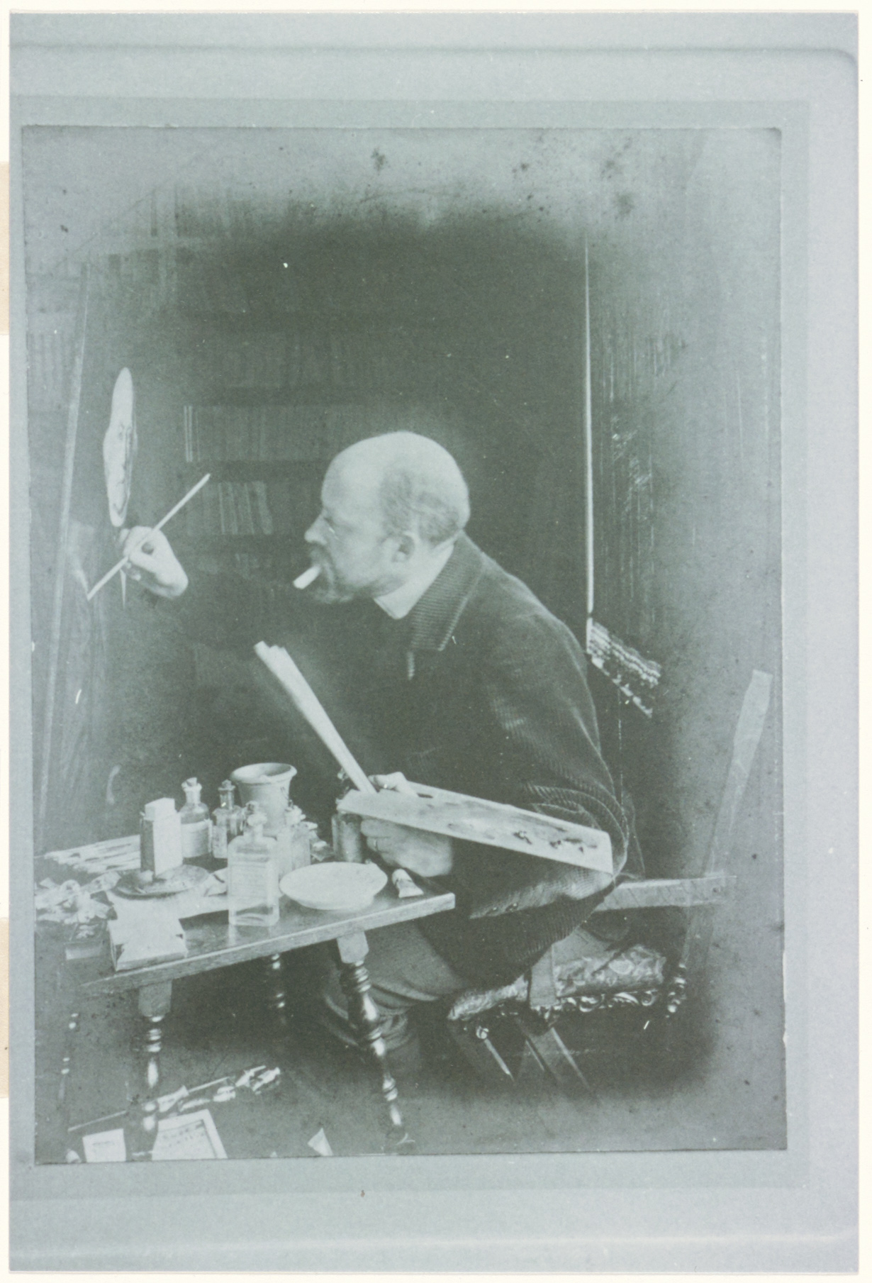Foto van Jan Pieter Veth bezig in zijn atelier