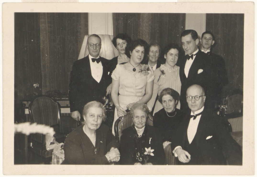 - Foto van de drie dochters van Jan Pieter Veth met hun echtgenoten en andere familieleden