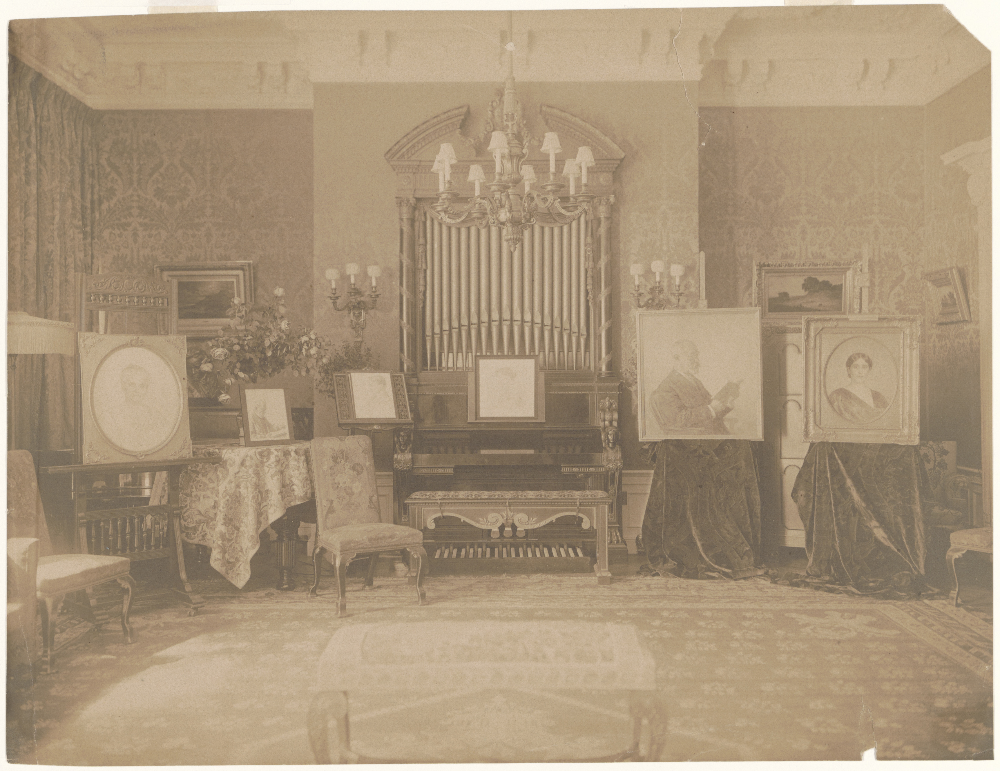Foto van de tentoonstelling van schilderijen van Jan Pieter Veth in New York ten huize van mevrouw Warburg van 6-9 maart 1910