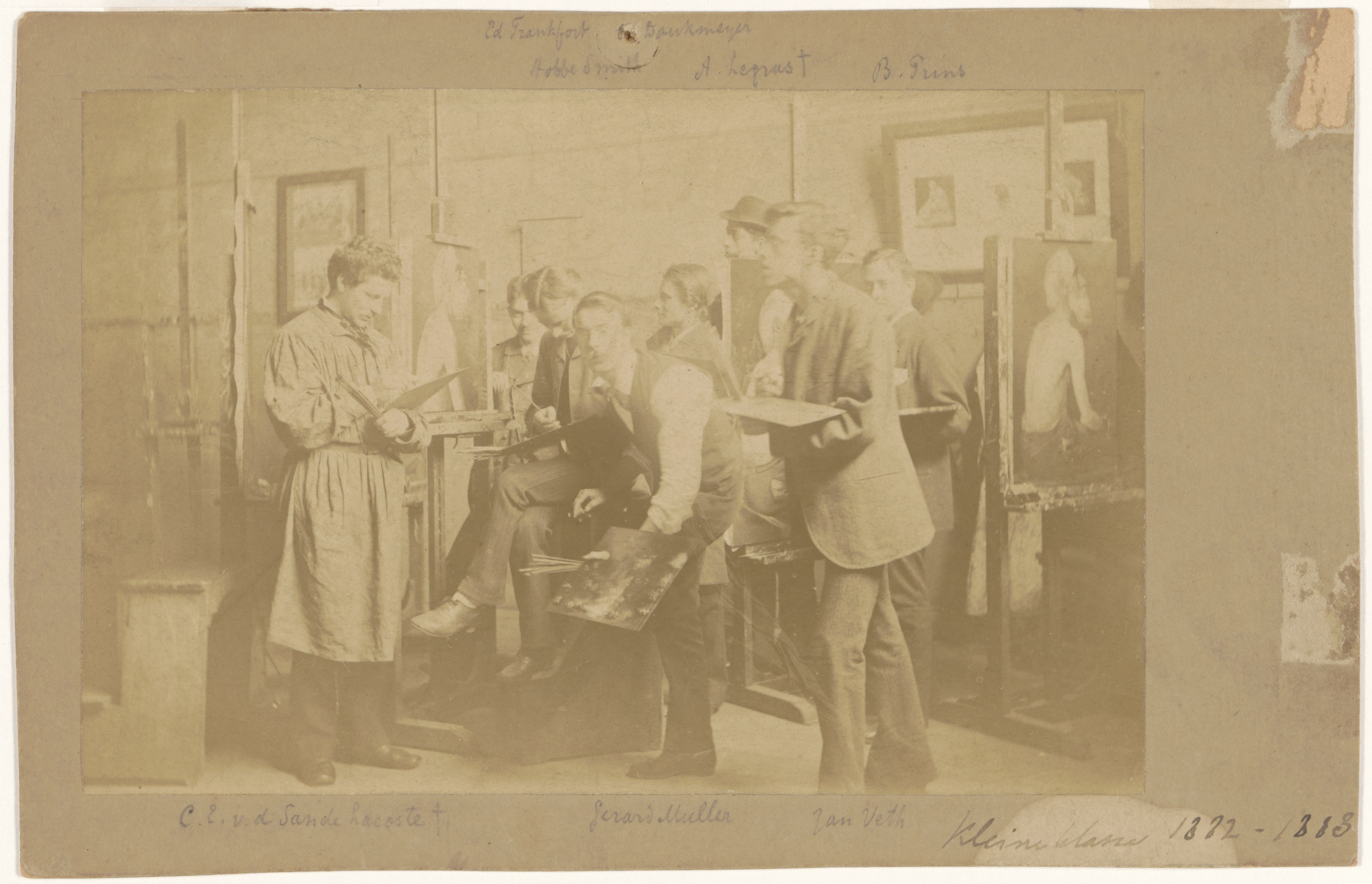 Foto van de kleine klasse 1882-1883 van de Rijksacademie te Amsterdam