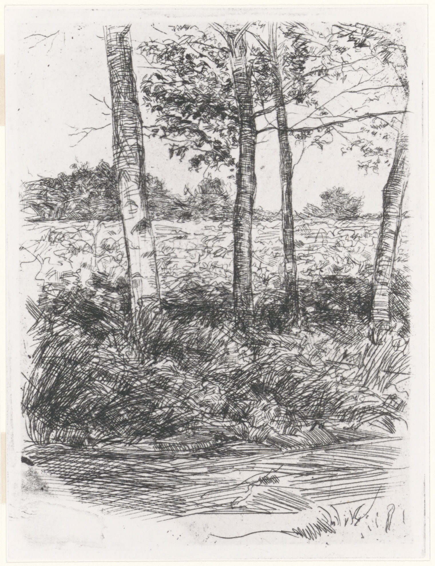 Reproductie van een schets gemaakt door Jan P. Veth van bomen