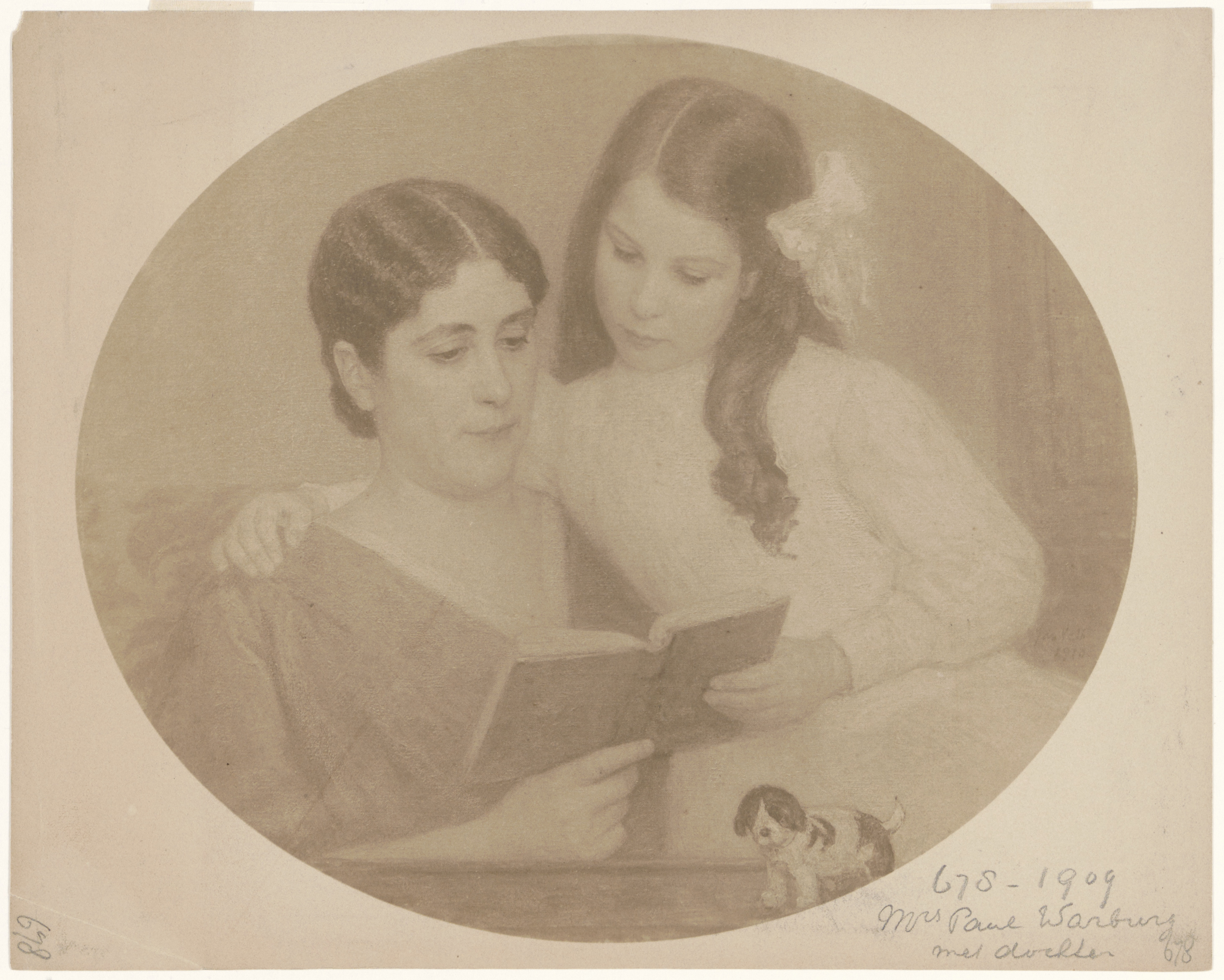 - Reproductie van een olieverfschilderij door Jan P. Veth van mevrouw Moritz-Warburg met haar dochter