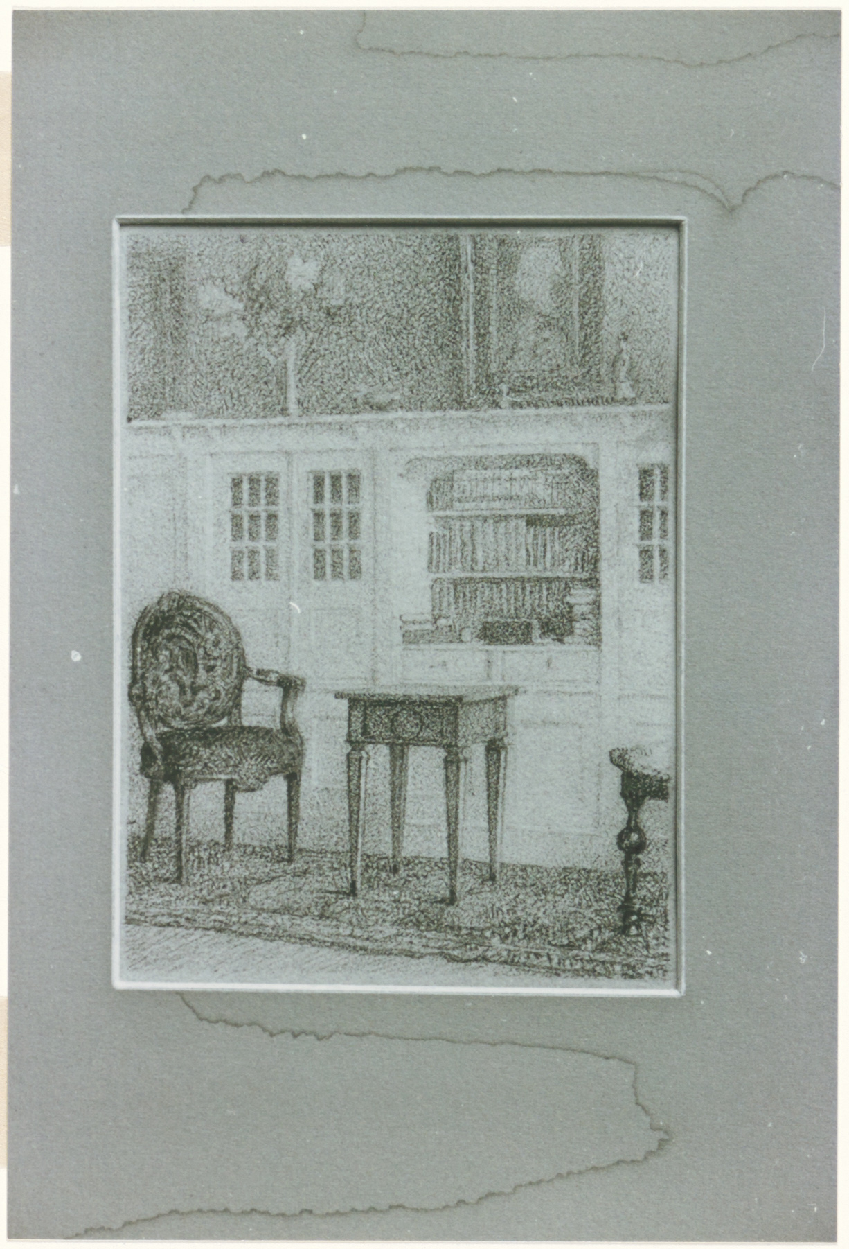 - Tekening van het interieur van het huis van Jan P. Veth aan de Parklaan 33 te Bussum getekend door Alida J. Veth